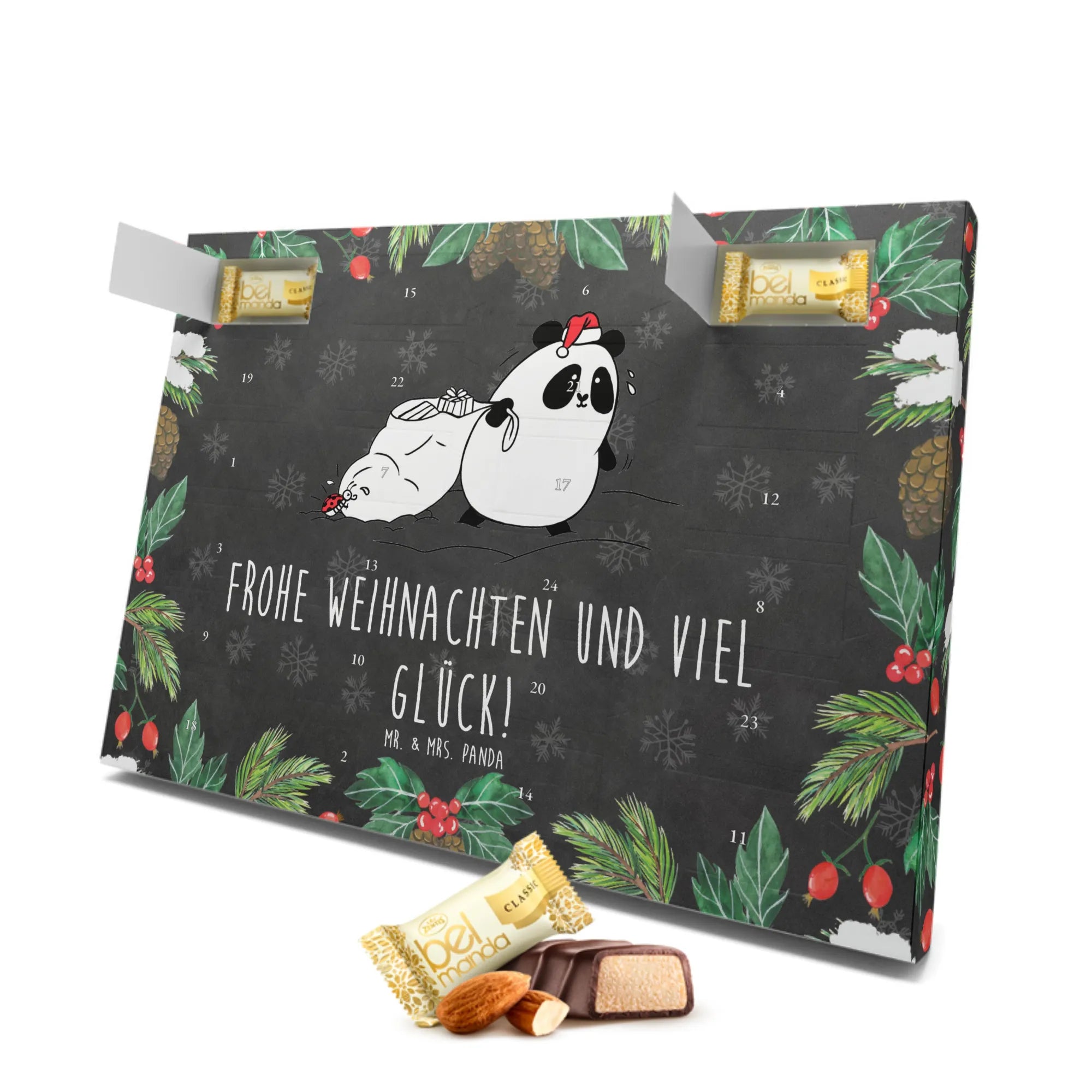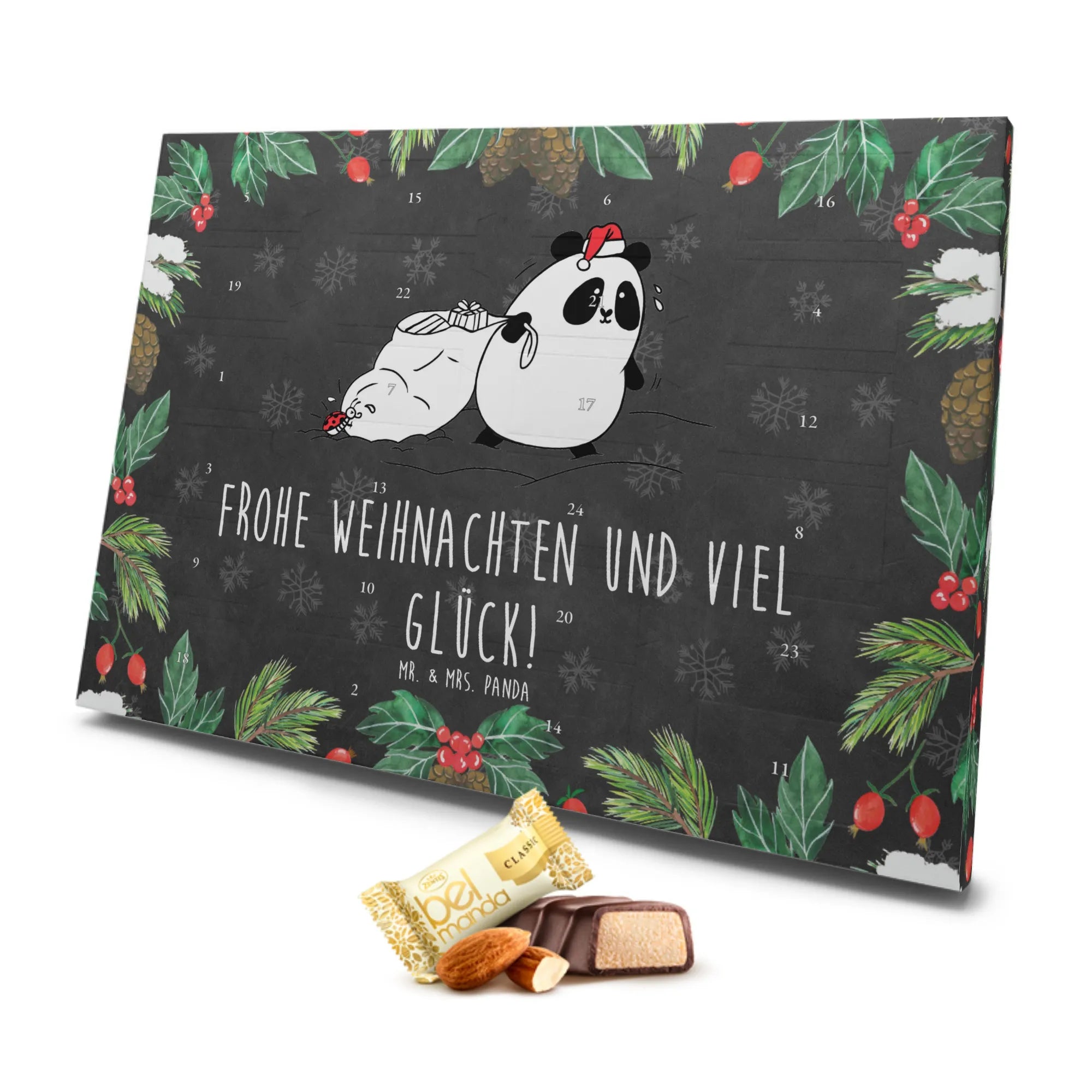 Der Marzipan Adventskalender 'Easy & Peasy Frohe Weihnachten' von Mr. & Mrs. Panda ist das perfekte Geschenk für die ganze Familie, Freunde oder Kollegen in der besinnlichen Vorweihnachtszeit. Mit seinem liebevoll handgezeichneten Motiv, einem süßen Panda, der sich als Nikolaus verkleidet hat und einen großen Sack voller Geschenke hinter sich her zieht, zaubert dieser Kalender ein Lächeln auf jedes Gesicht. Ergänzt wird das Bild von einem kleinen Marienkäfer, der dem Panda zur Seite steht.