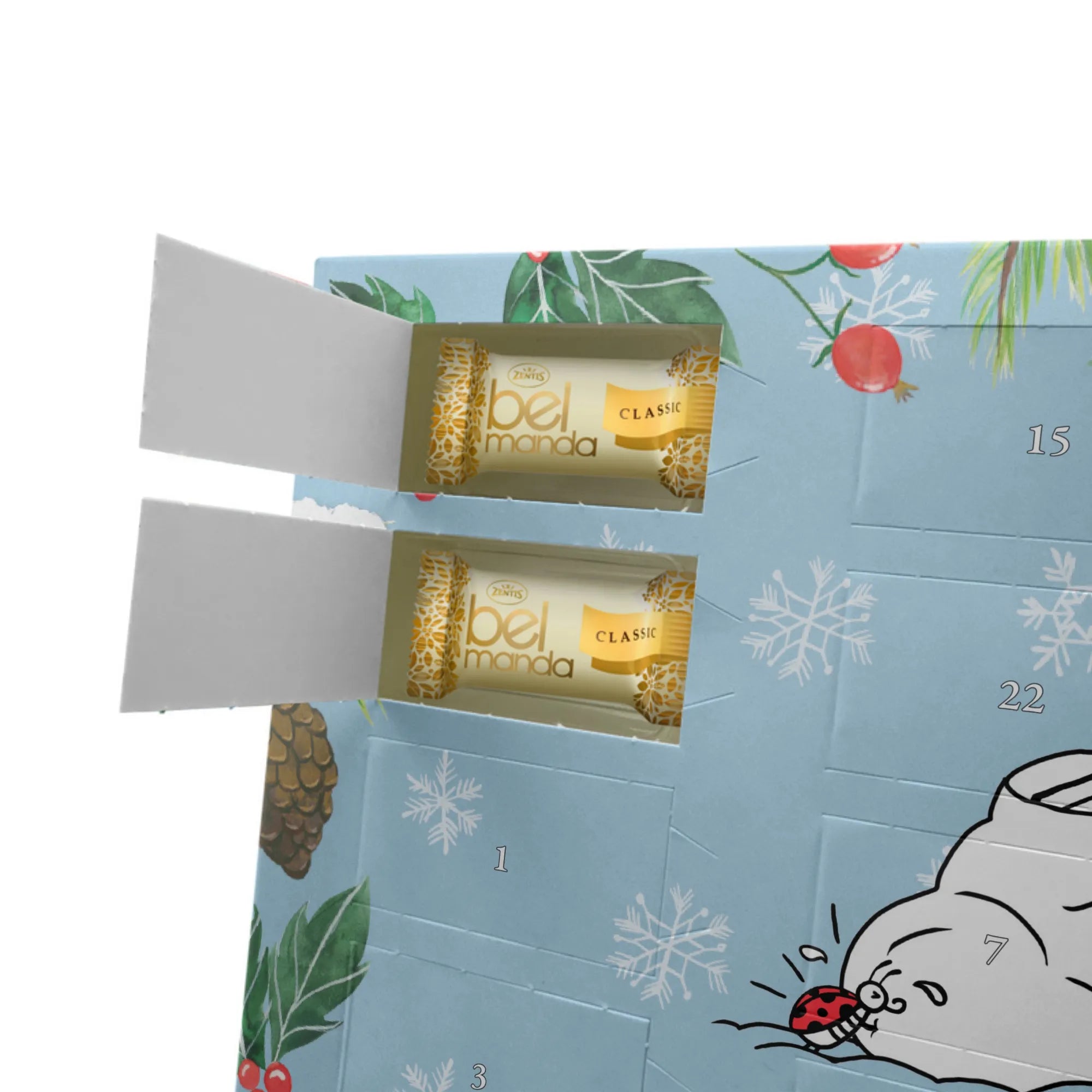 Bereite dir selbst oder deinen Liebsten jeden Tag mit dem Marzipan Adventskalender von Mr. & Mrs. Panda Freude. In einer Größe von 325 mm x 225 mm x 27 mm bietet dieser Kalender 24 Tage puren Marzipangenusses. Wunderschöne Illustrationen und inspirierende Sprüche schmücken ihn und machen ihn zu einem wahren Weihnachtsmärchen. Die seidenmatte Oberflächenveredelung hebt die Details der Illustrationen hervor und die bedruckten Seitenflächen verleihen ihm eine edle Note. Ganz nach Wunsch kann der Kalender aufgehängt oder aufgestellt werden. Beachte bitte, dass er Spuren anderer Schalenfrüchte enthalten kann. Dieser Kalender ist mehr als nur eine Süßigkeit – es ist ein Erlebnis der Sinne in der Adventszeit.