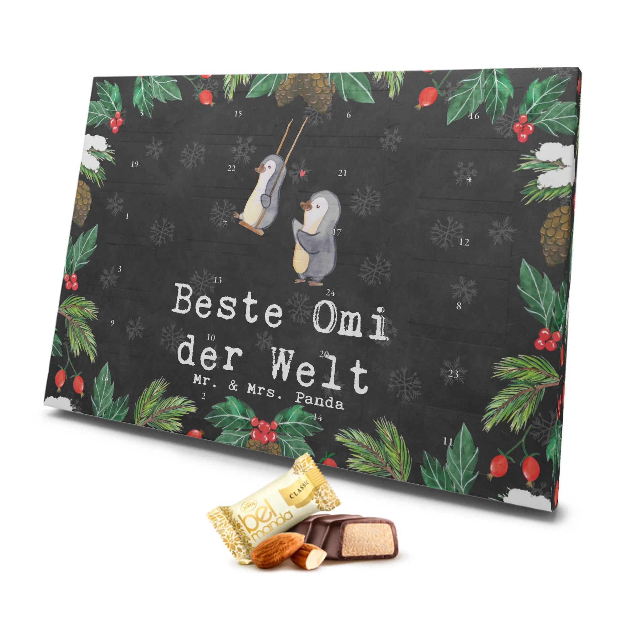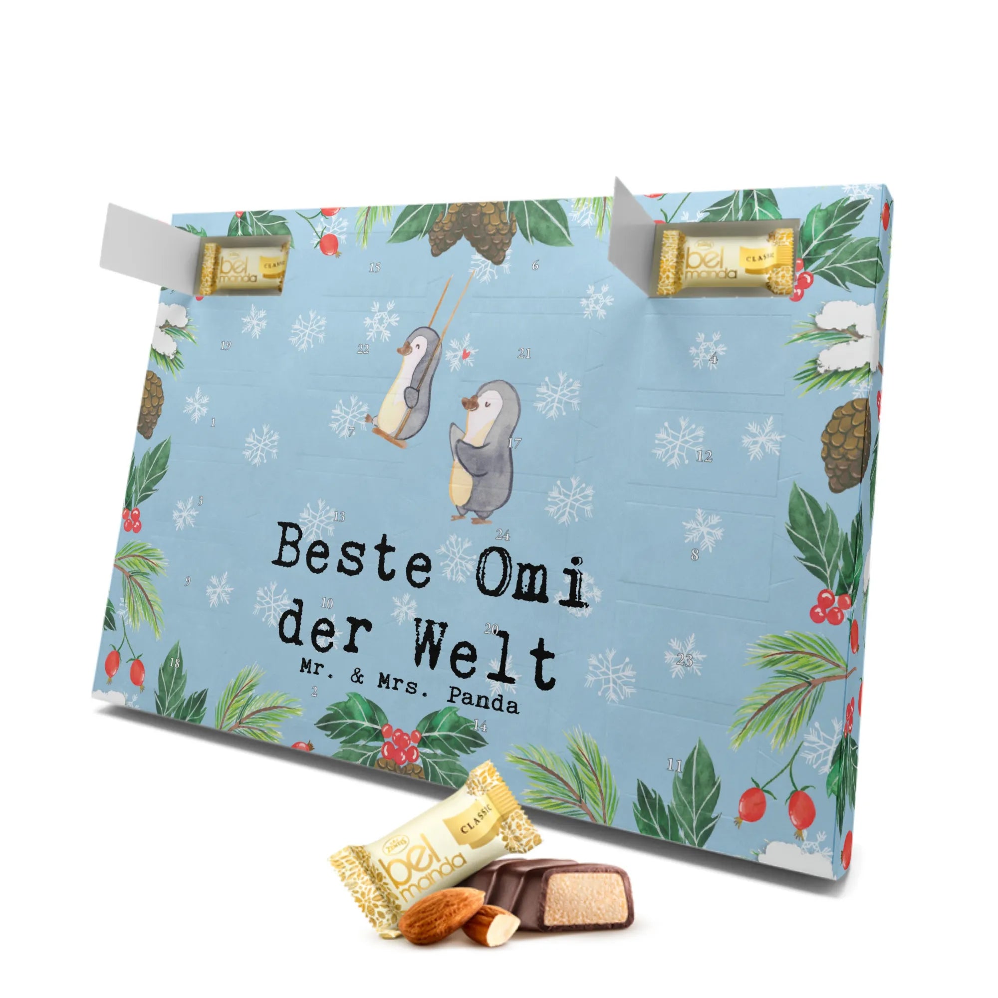 Der Mr. & Mrs. Panda Marzipan Adventskalender mit dem süßen Motiv "Pinguin Beste Omi der Welt" ist das perfekte Geschenk für die besten Großmütter! Egal, ob zum Geburtstag, als kleines Dankeschön oder einfach, um Freude zu bereiten – dieser Adventskalender bringt ein Lächeln auf die Gesichter der Enkel!