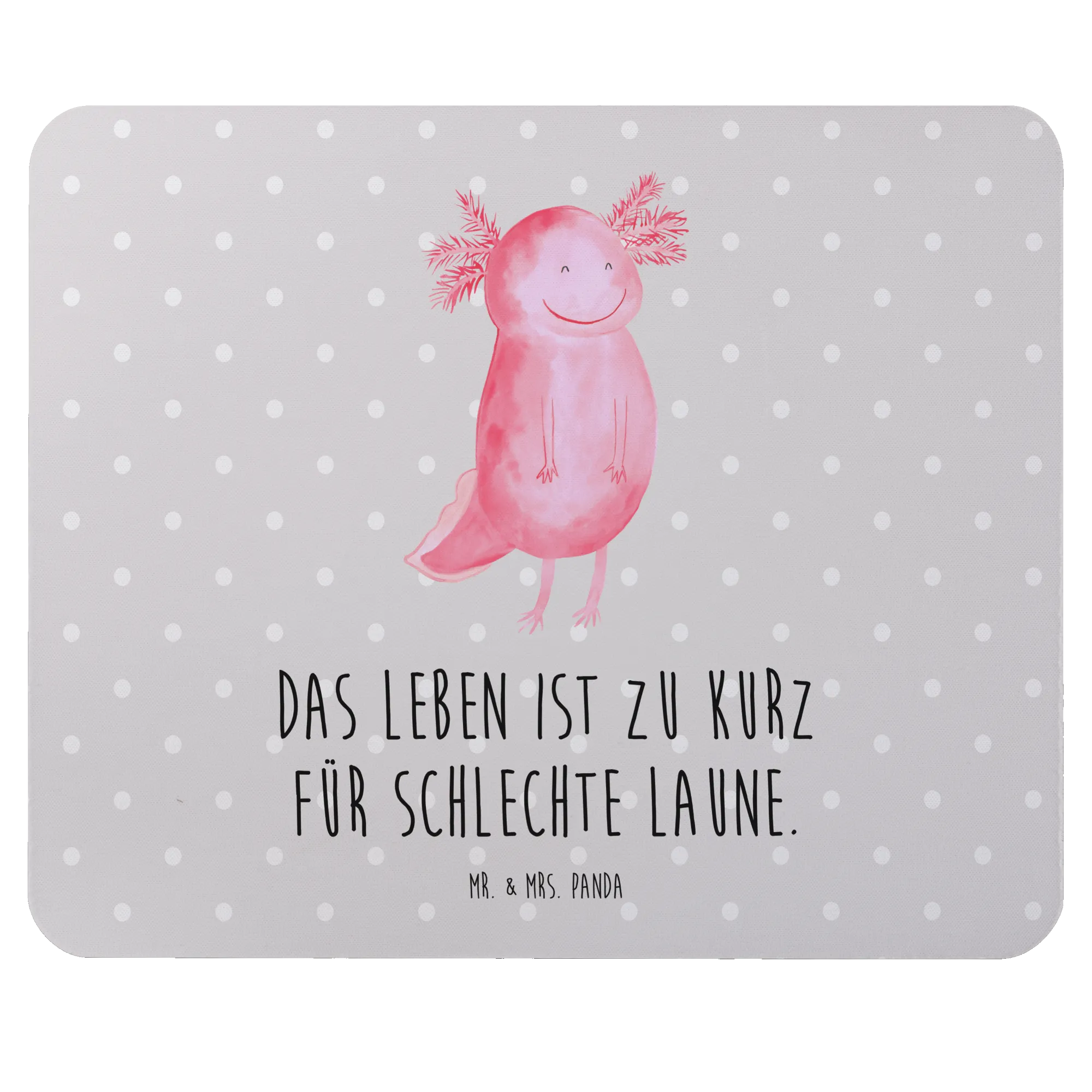 Mauspad Axolotl glücklich - mit Spruch - Grau Pastell
