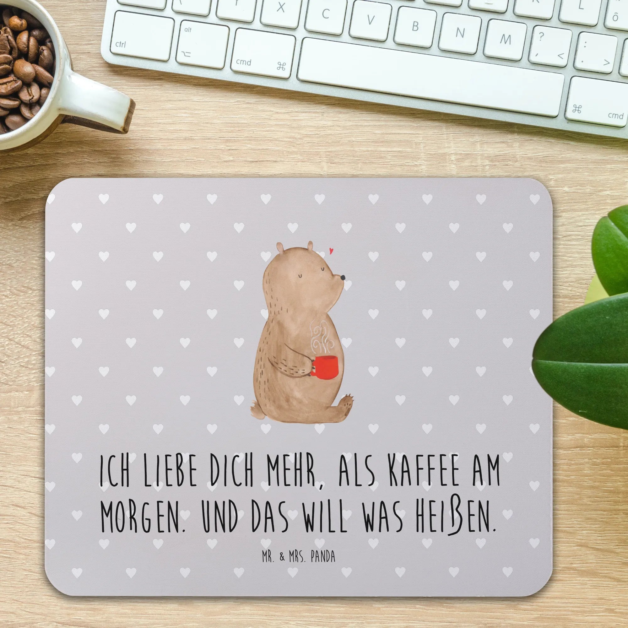 Das Mauspad "Bär Morgenkaffee" aus der liebevollen Kollektion von Mr. & Mrs. Panda ist das perfekte Geschenk für all diejenigen, die den Alltag im Büro oder Homeoffice mit einer Prise Liebe und Freude aufpeppen möchten. Mit dem motivierenden Spruch: "Ich liebe dich mehr, als Kaffee am Morgen. Und das will was heißen!" zauberst Du nicht nur ein Lächeln auf die Lippen des Beschenkten, sondern schaffst auch eine liebevolle Atmosphäre am Arbeitsplatz.