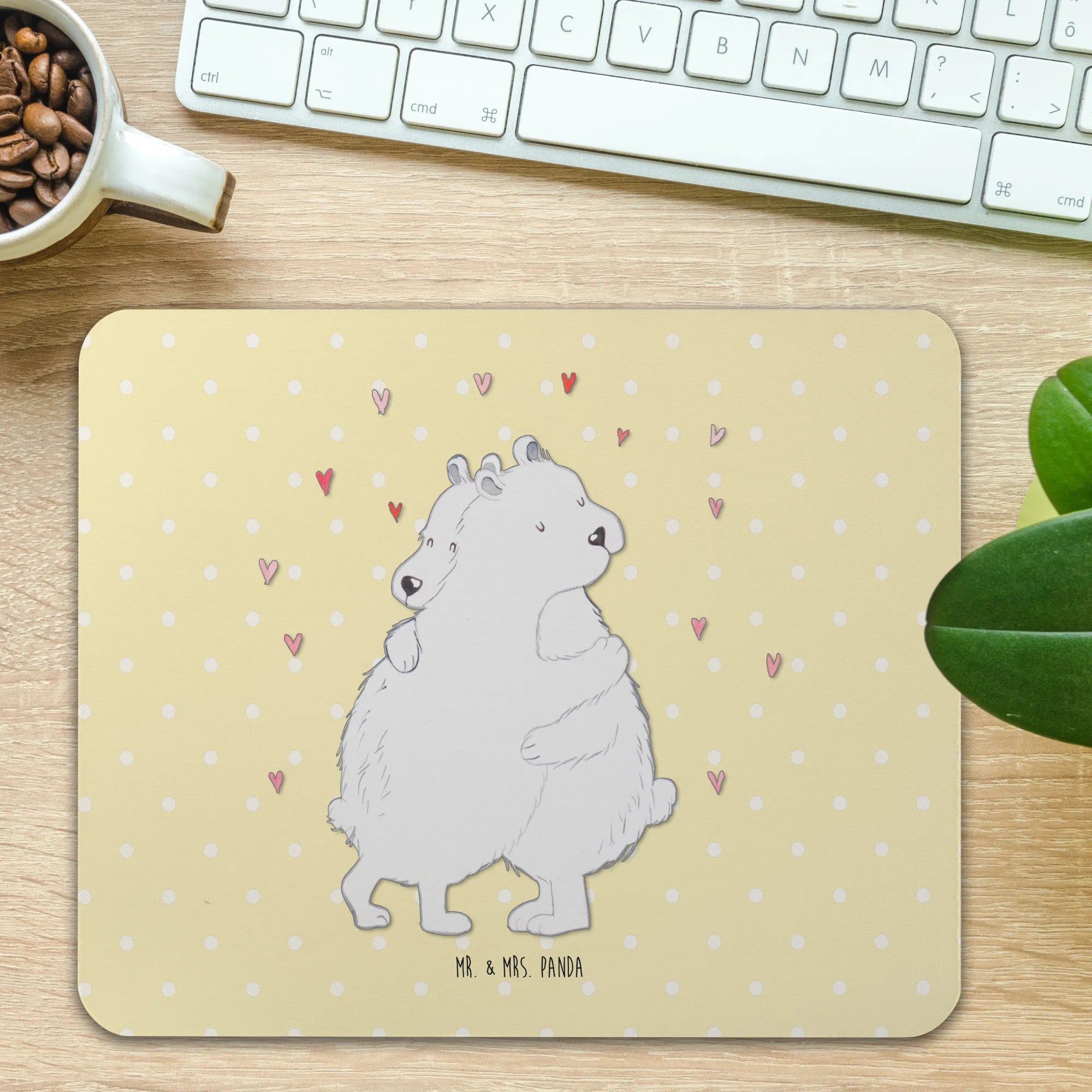 Das Mauspad Eisbär Umarmen von Mr. & Mrs. Panda ist der perfekte Begleiter für dein Homeoffice oder deinen Schreibtisch. Mit einem liebevollen Motiv, das zwei Eisbären zeigt, die sich innig umarmen, bringt es eine gute Laune in jeden Arbeitstag! 🌟