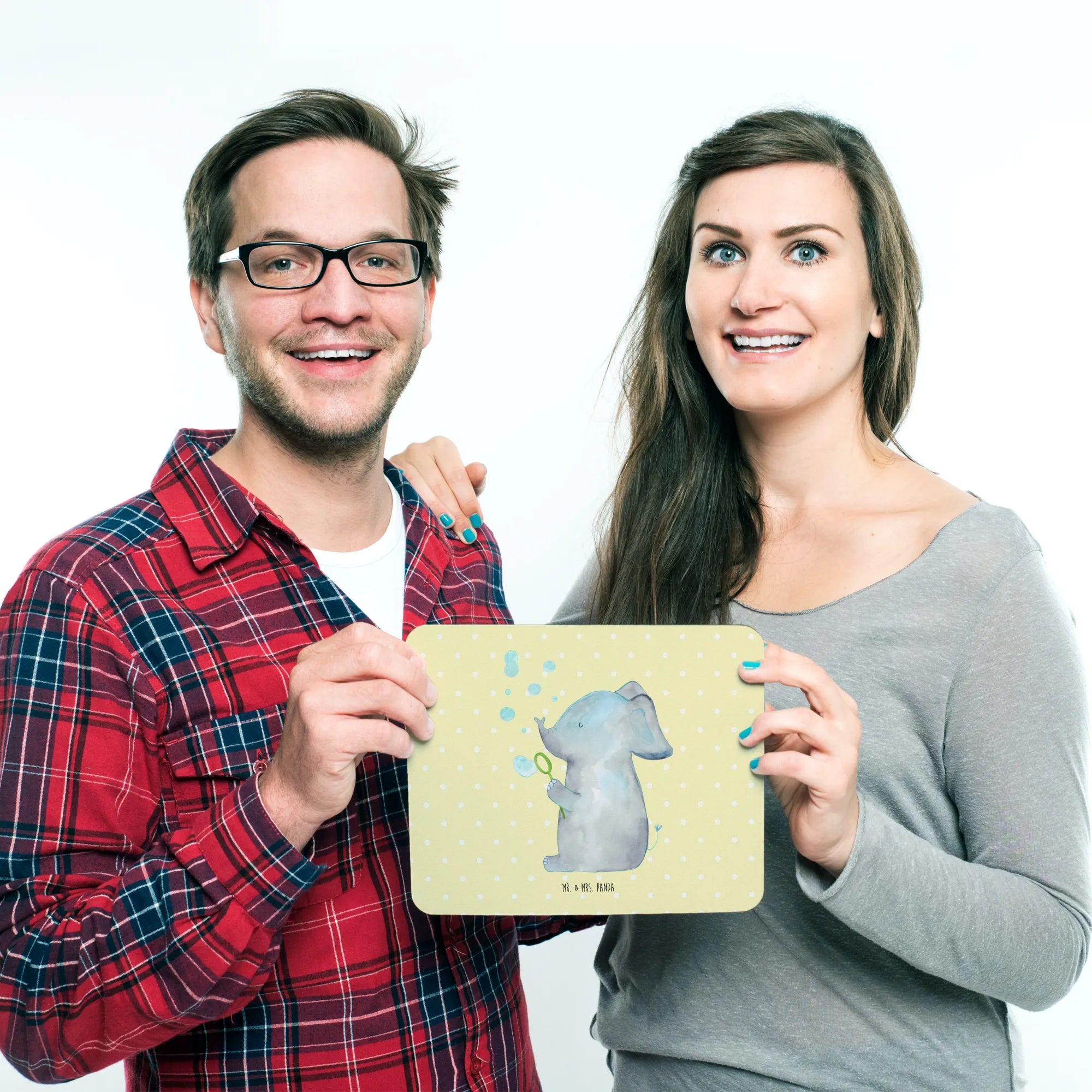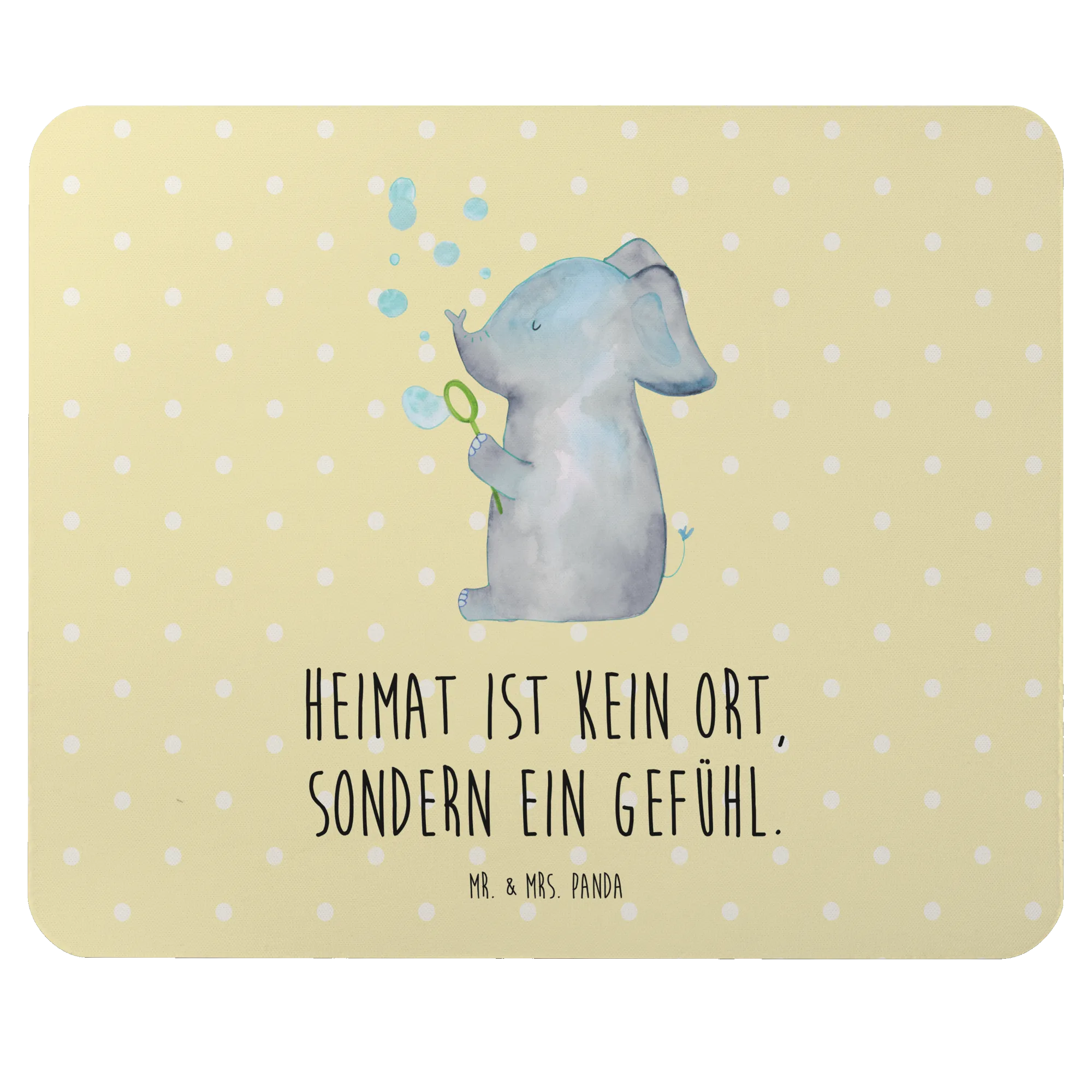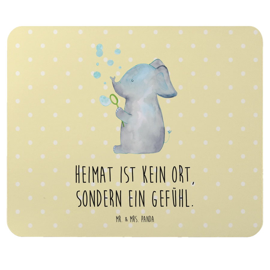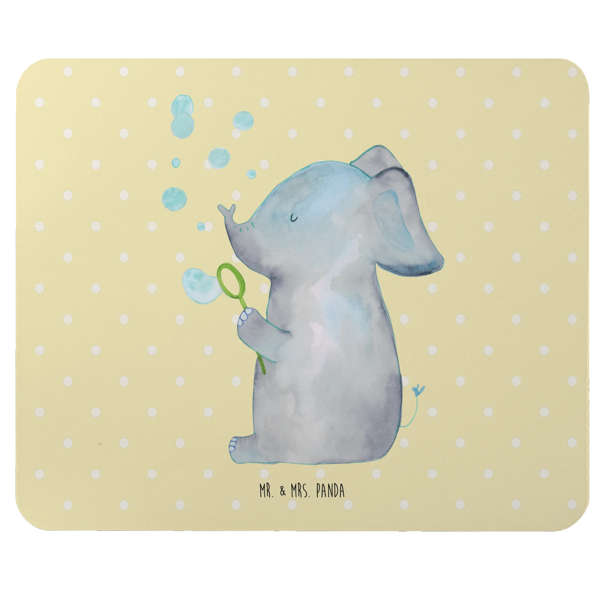 Mauspad Elefant Seifenblasen - mit Spruch - Gelb Pastell