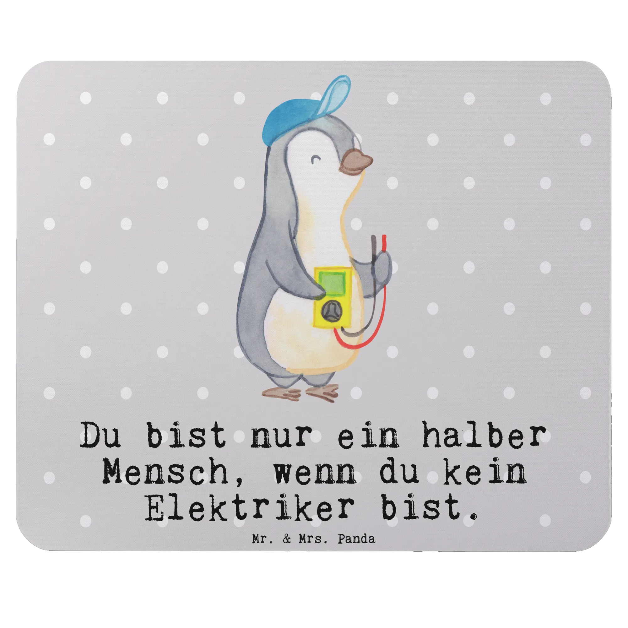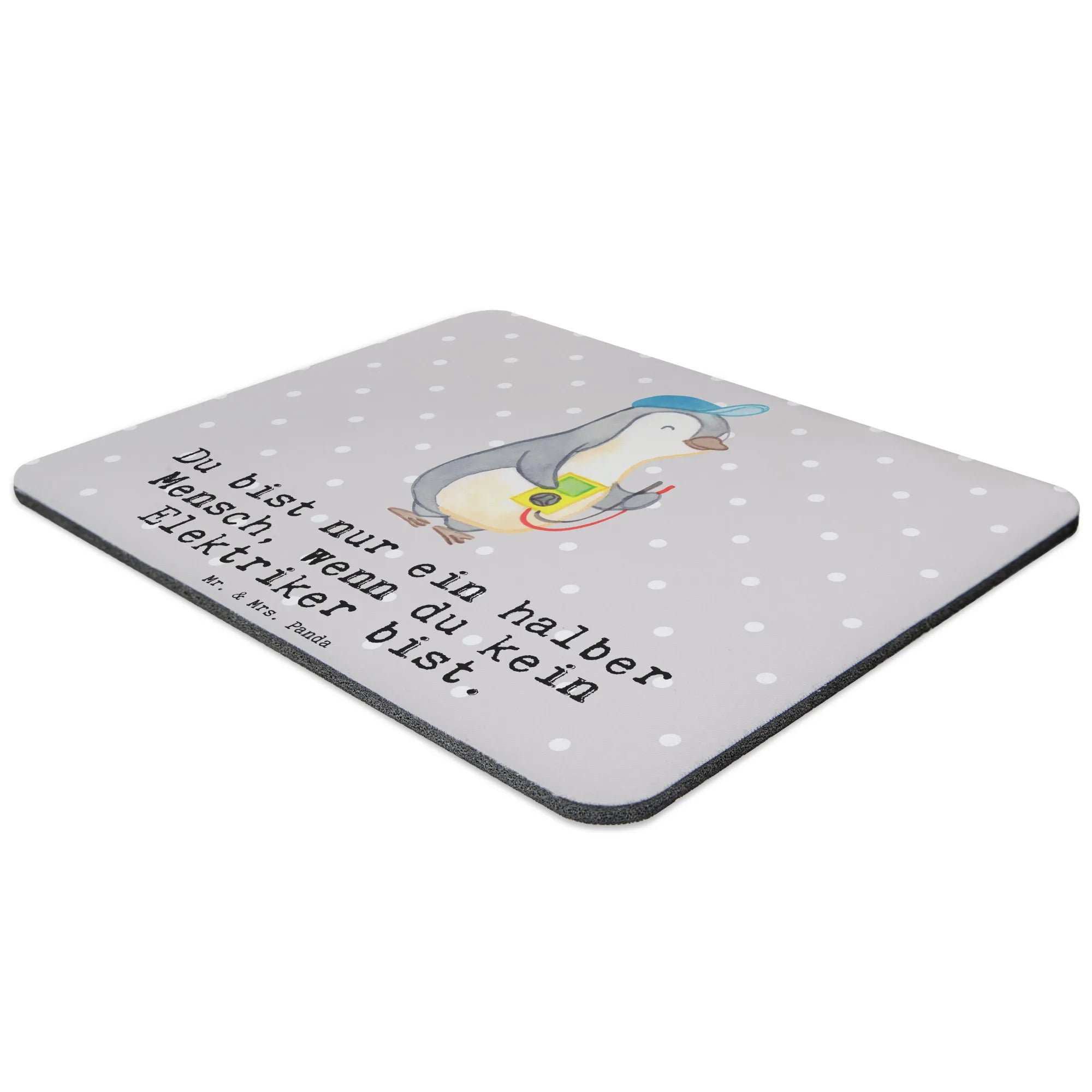Das Mauspad "Elektriker mit Herz" aus der Kollektion Berufe von Mr. & Mrs. Panda ist das perfekte Geschenk für alle Elektrotechniker, Elektroinstallateure und Elektroniker. Mit seinem liebevoll handgezeichneten Motiv und dem Spruch "Du bist nur ein halber Mensch, wenn du kein Elektriker bist" bringt es ein Lächeln in den Büroalltag.
