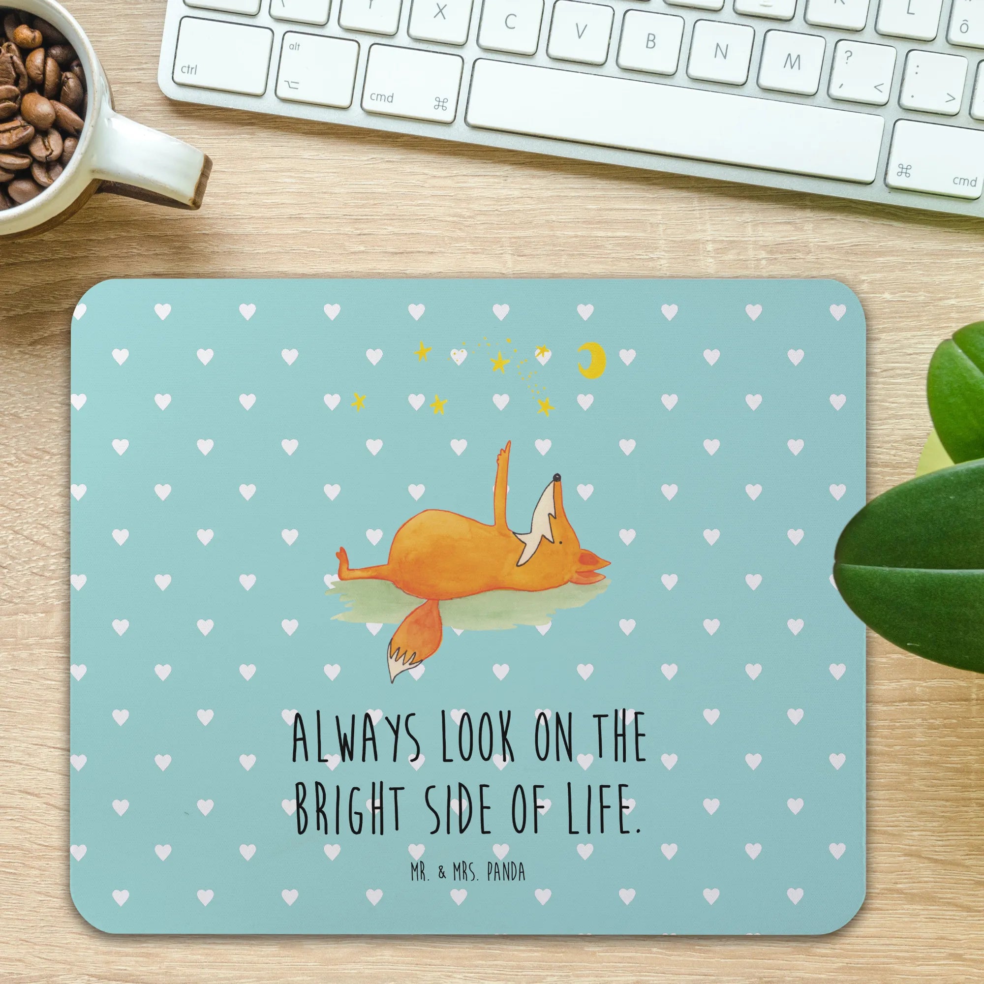Unser Mauspad „Fuchs Sterne“ aus der Fuchs Kollektion von Mr. & Mrs. Panda vereint liebevolles Design mit praktischem Nutzen. Der pastellige Türkis-Hintergrund und der niedliche Fuchs, der verträumt in die Sterne schaut, zaubern dir bei jedem Blick ein Lächeln ins Gesicht. Der positive Spruch „Always look on the bright side of life.“ erinnert dich sanft daran, das Gute zu sehen – perfekt für stressige Tage im Homeoffice oder im Büro.