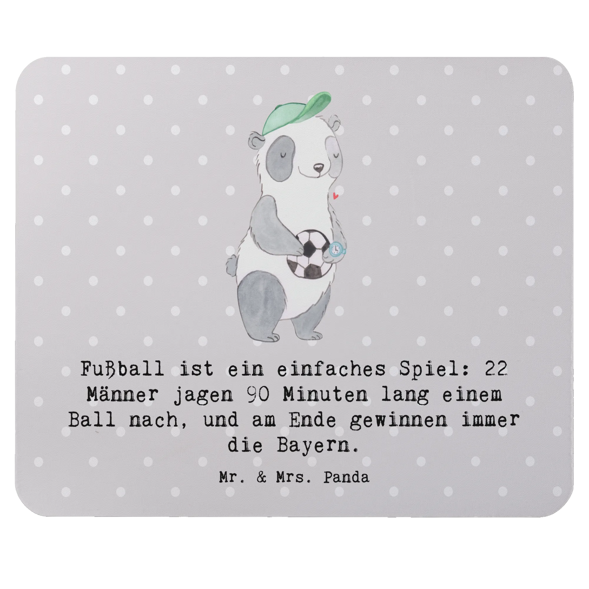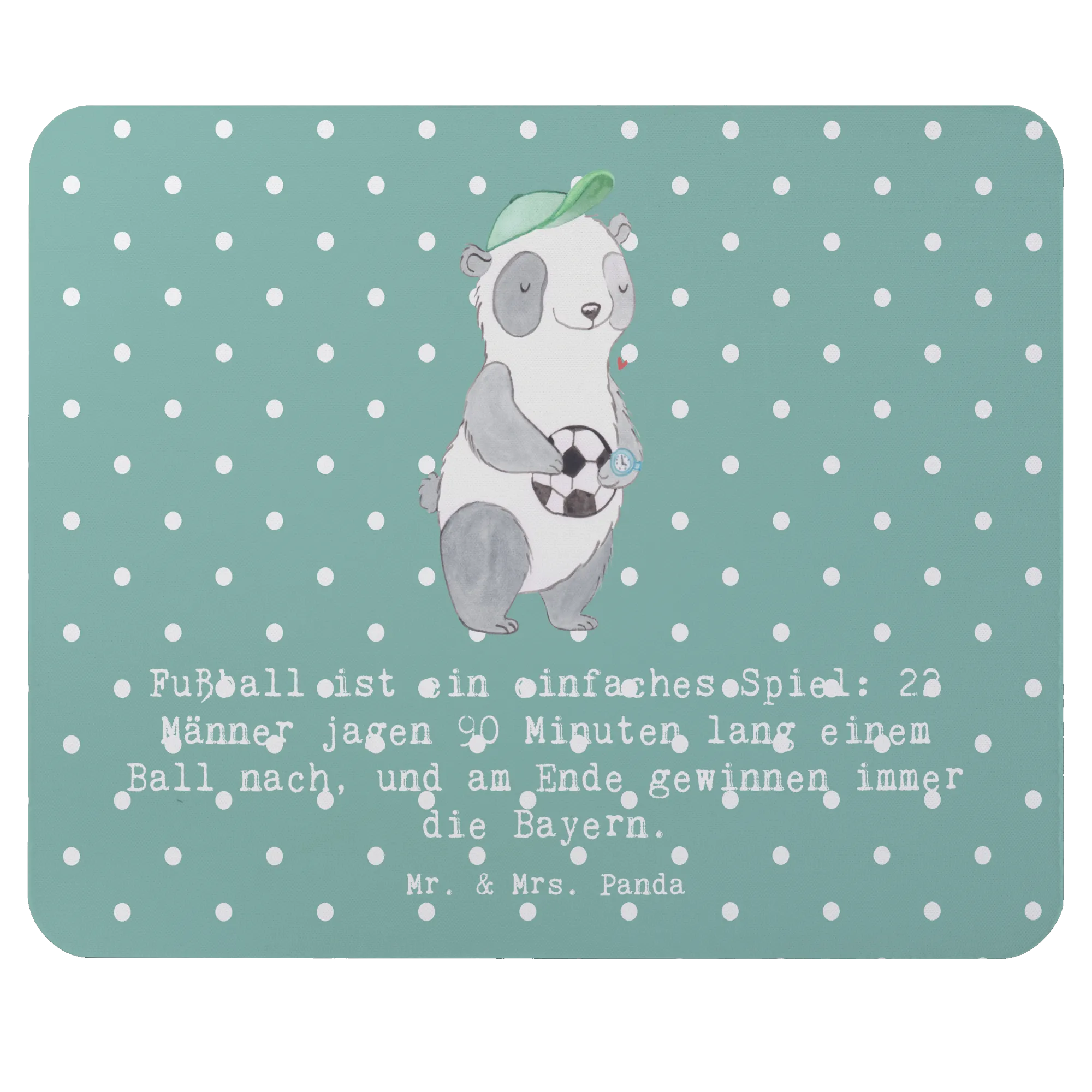 Entdecke das perfekte Geschenk für alle Fußball-Fans und Sportbegeisterten mit unserem exquisiten Mauspad von Mr. & Mrs. Panda! Der Slogan "Fußball ist ein einfaches Spiel: 22 Männer jagen 90 Minuten lang einem Ball nach, und am Ende gewinnen immer die Bayern" bringt die Leidenschaft des Fußballs direkt auf deinen Schreibtisch.