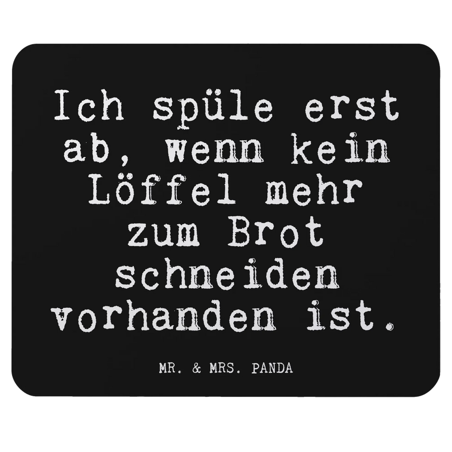 Mit seinem charmanten und einprägsamen Spruch ist das Mauspad "Ich spüle erst ab, wenn kein Löffel mehr zum Brot schneiden vorhanden ist" nicht nur ein praktisches Accessoire für jeden Computerliebhaber, sondern auch eine originelle Dekoration für das Arbeitszimmer. Überrasche deine Freunde und Familie mit diesem besonderen Artikel aus der Spruchreif Kollektion von Mr. & Mrs. Panda – für jeden Anlass findest du hier das passende Geschenk!