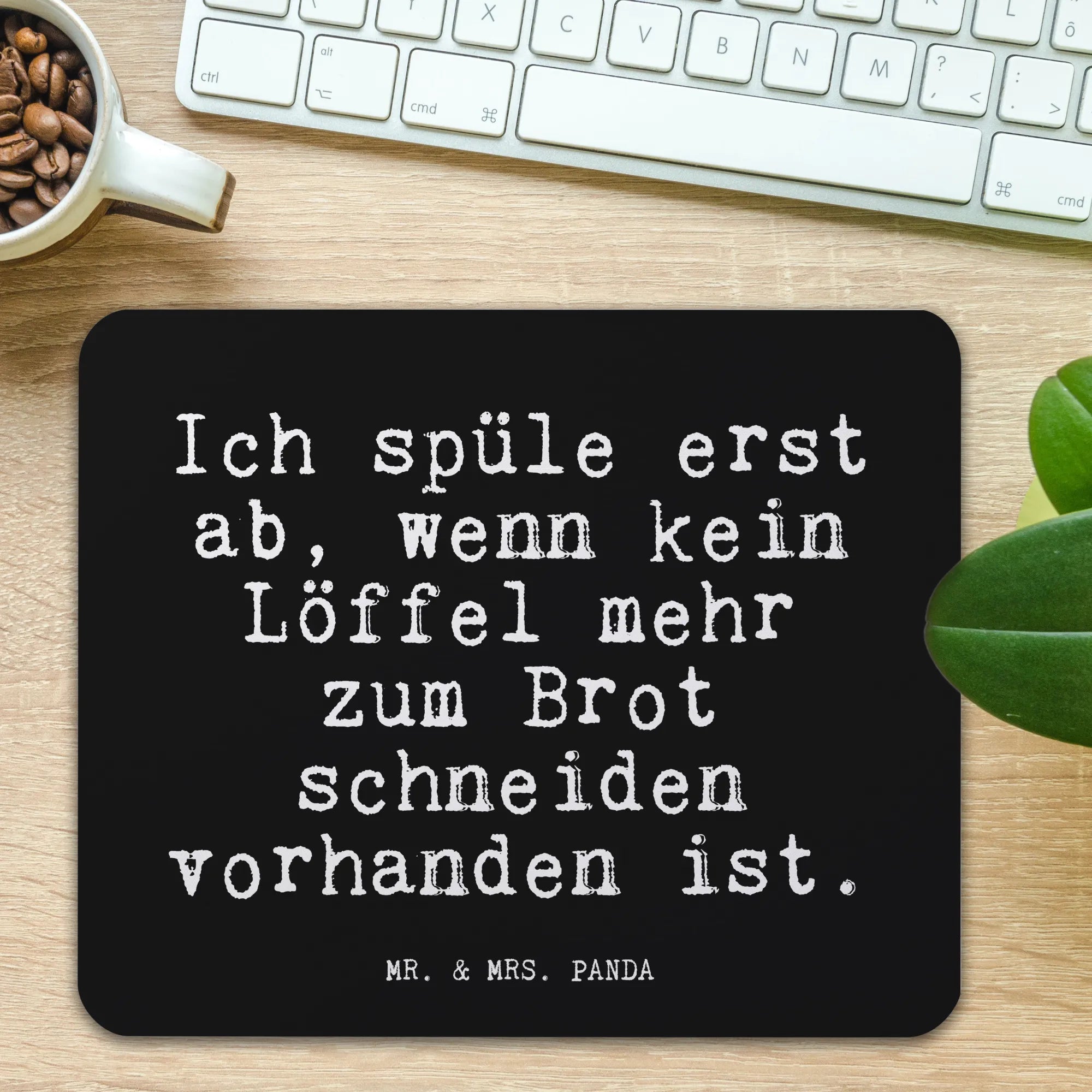 Suchst du nach dem perfekten Geschenk für einen Junggesellen, besten Freund oder Partner? Dann ist das Mauspad "Ich spüle erst ab, wenn kein Löffel mehr zum Brot schneiden vorhanden ist" von Mr. & Mrs. Panda genau das Richtige für dich! Egal, ob für die erste eigene Wohnung oder im Singlehaushalt, dieses einzigartige Mauspad ist ein echter Hingucker und bringt einen Hauch von Humor in jeden Arbeitsplatz.