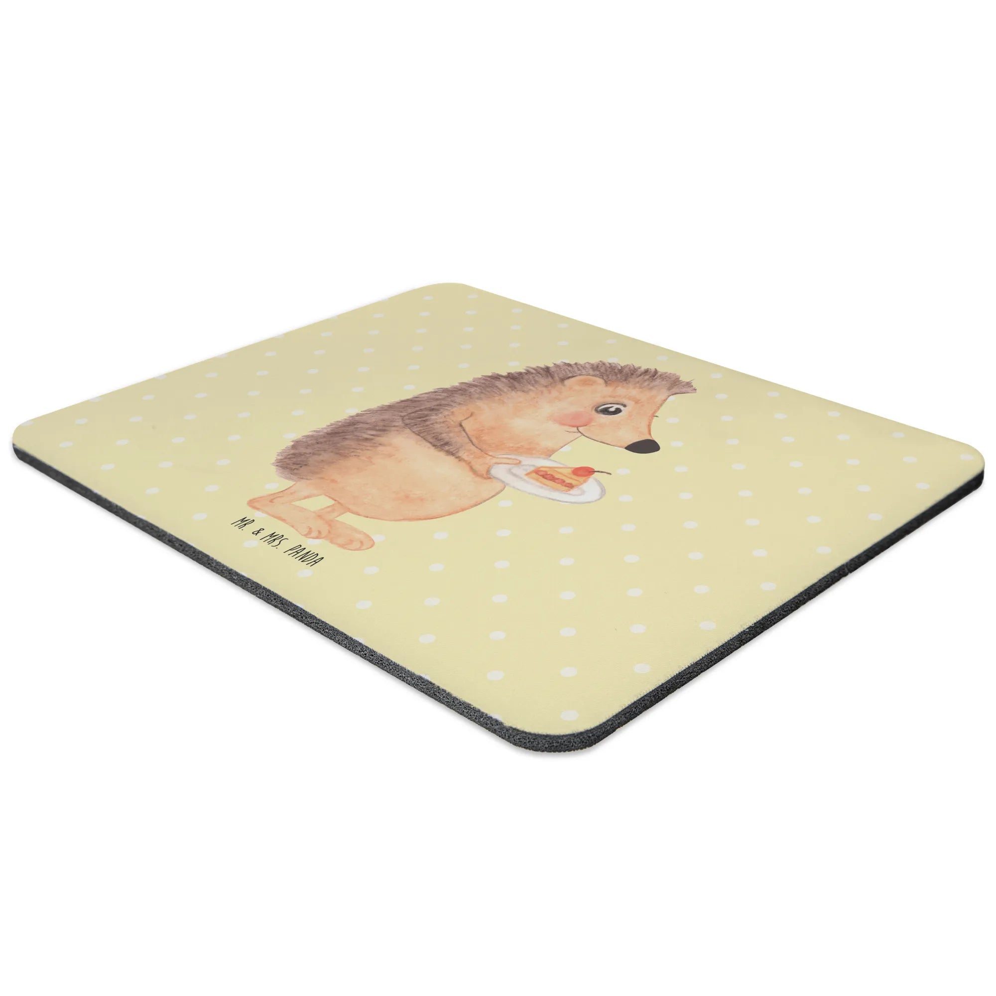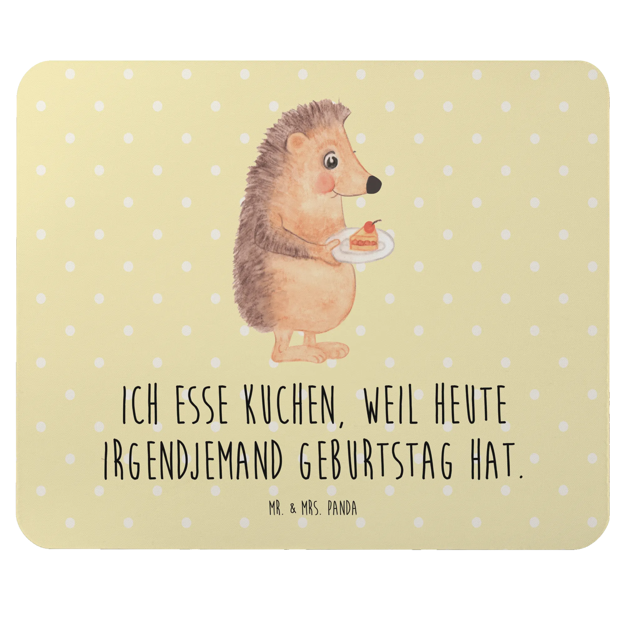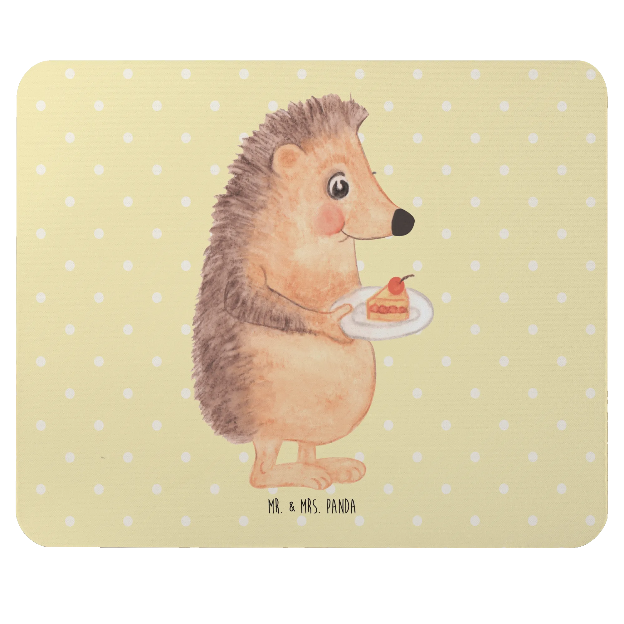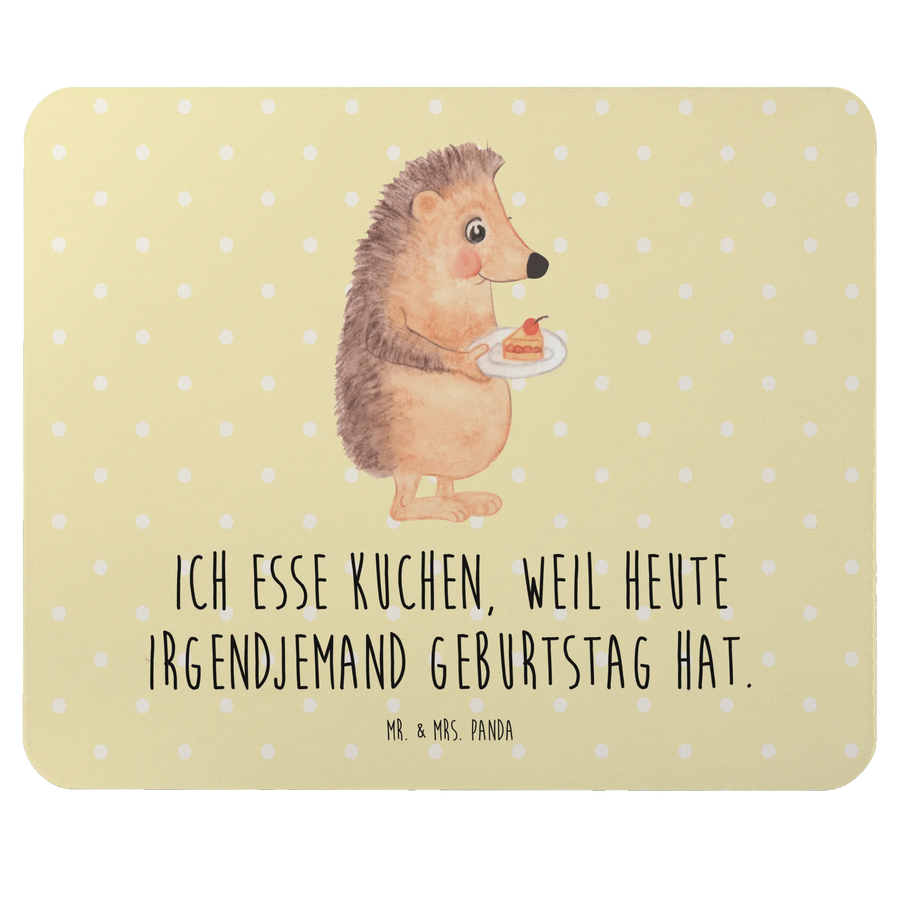 Mauspad Igel mit Kuchenstück - mit Spruch - Gelb Pastell