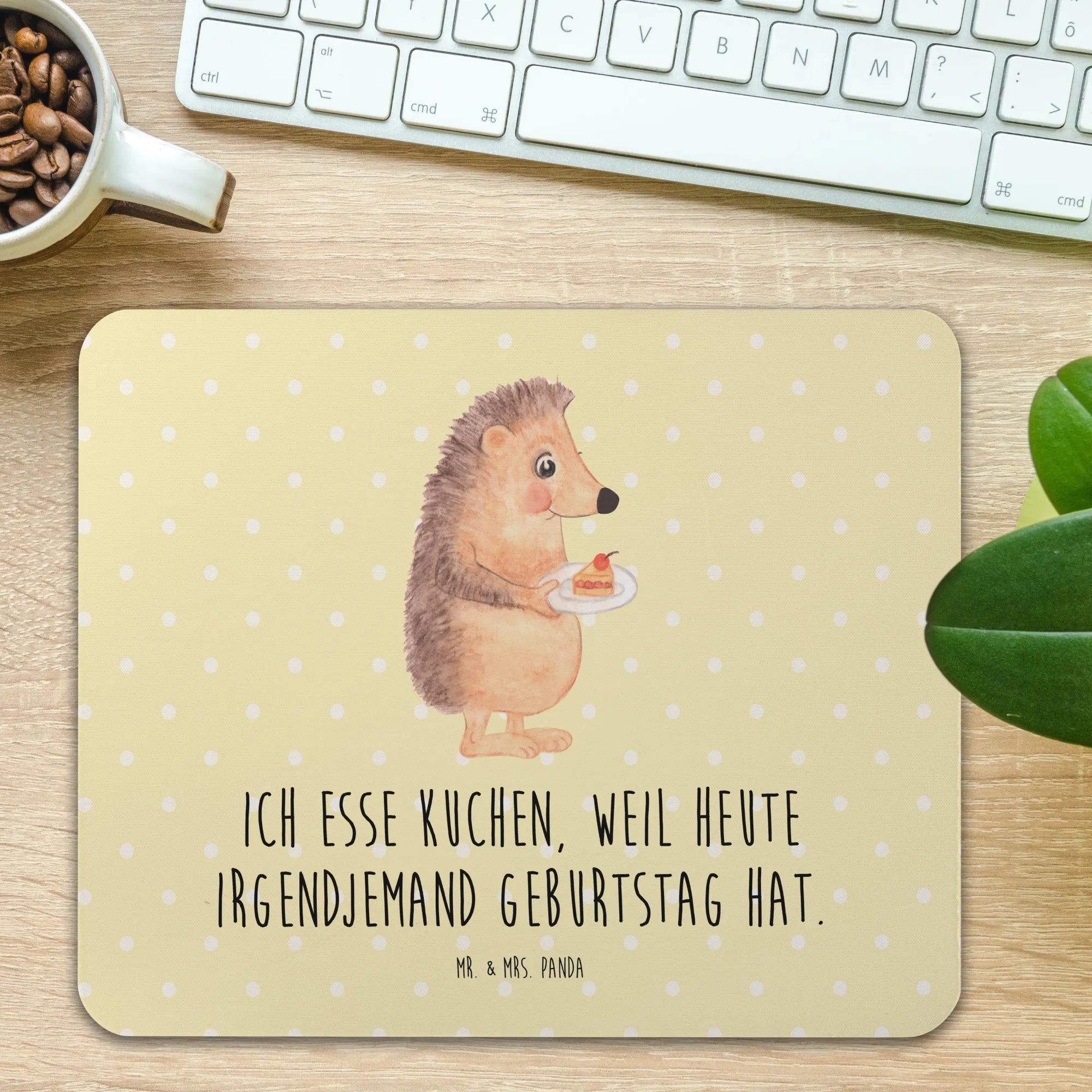 Entdecke das perfekte Mauspad von Mr. & Mrs. Panda, das nicht nur funktional ist, sondern auch mit einem traumhaften Motiv verzaubert! Das Mauspad mit dem süßen Igel, der ein Stück Kuchen präsentiert, bringt eine gute Laune in dein Homeoffice oder an deinen Arbeitsplatz. Mit dem Spruch 'Ich esse Kuchen, weil heute irgendjemand Geburtstag hat.' sorgt es für den richtigen Schwung und ein Lächeln während der Arbeit.