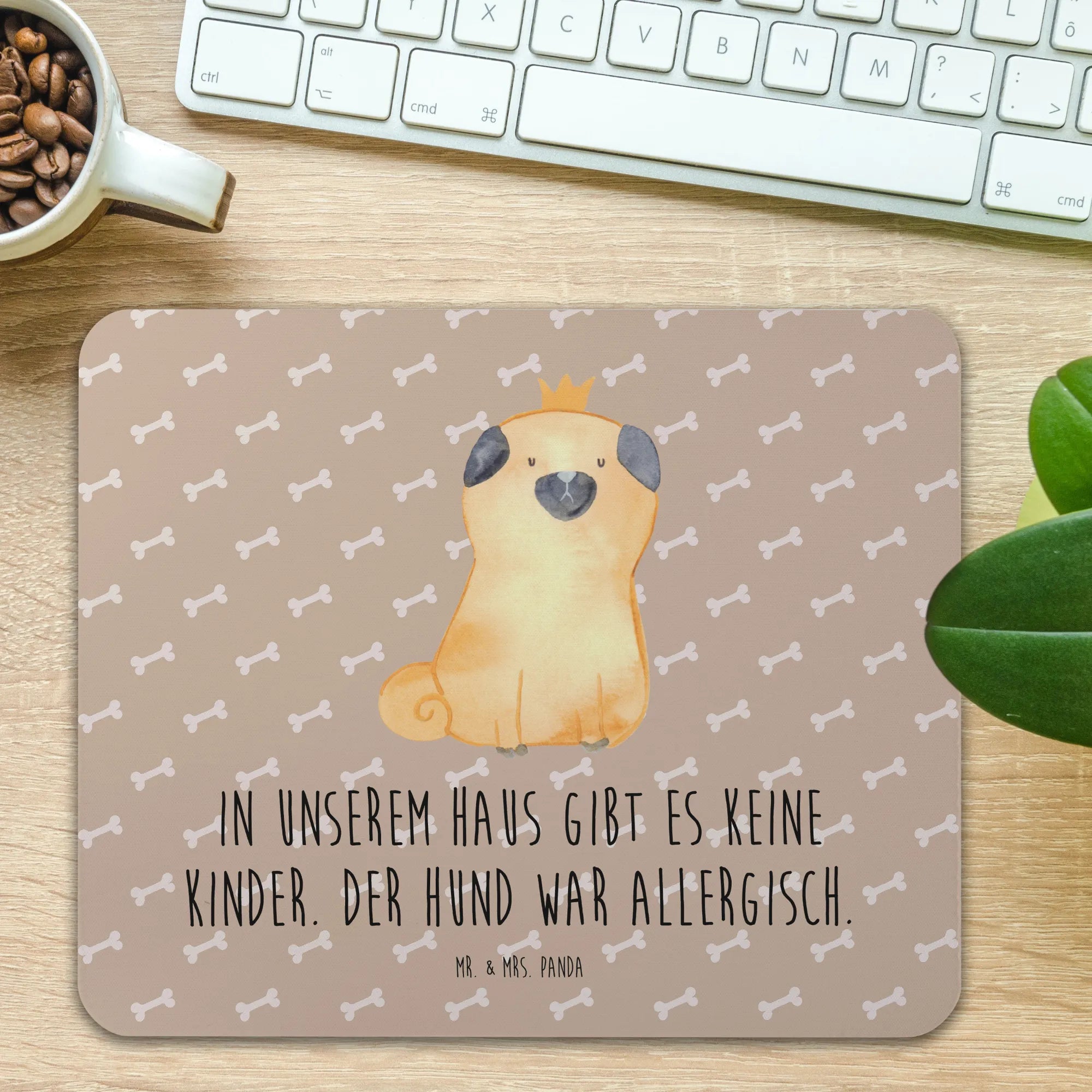 \nBist Du bereit, Deinem Büro einen neuen Look zu verleihen? Hol Dir das Mops Krone Mauspad von Mr. & Mrs. Panda und erlebe, wie ein kleines Accessoire Deinen Arbeitstag aufhellen kann! Lass den Mops mit seiner Krone Dein treuer Begleiter am Schreibtisch sein und verbreite gute Laune, auch wenn die Arbeit mal etwas stressig wird. Schließlich darf die Freude am Arbeiten nicht fehlen!