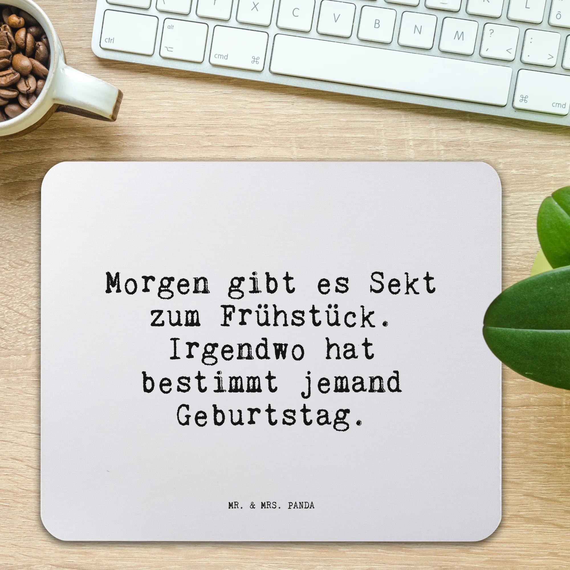 Egal ob für dich selbst oder als Überraschung für einen lieben Menschen – das Mauspad "Morgen gibt es Sekt zum Frühstück. Irgendwo hat bestimmt jemand Geburtstag." von Mr. & Mrs. Panda ist eine originelle Wahl, die in jedem Büro glänzt! Verschenke Freude und stilvolles Design in einem – und zeige, dass du an die kleinen, schönen Dinge im Leben glaubst!