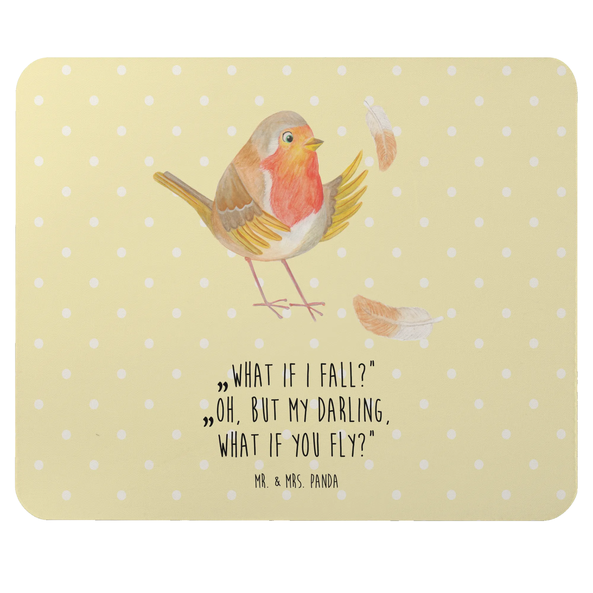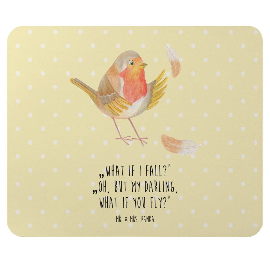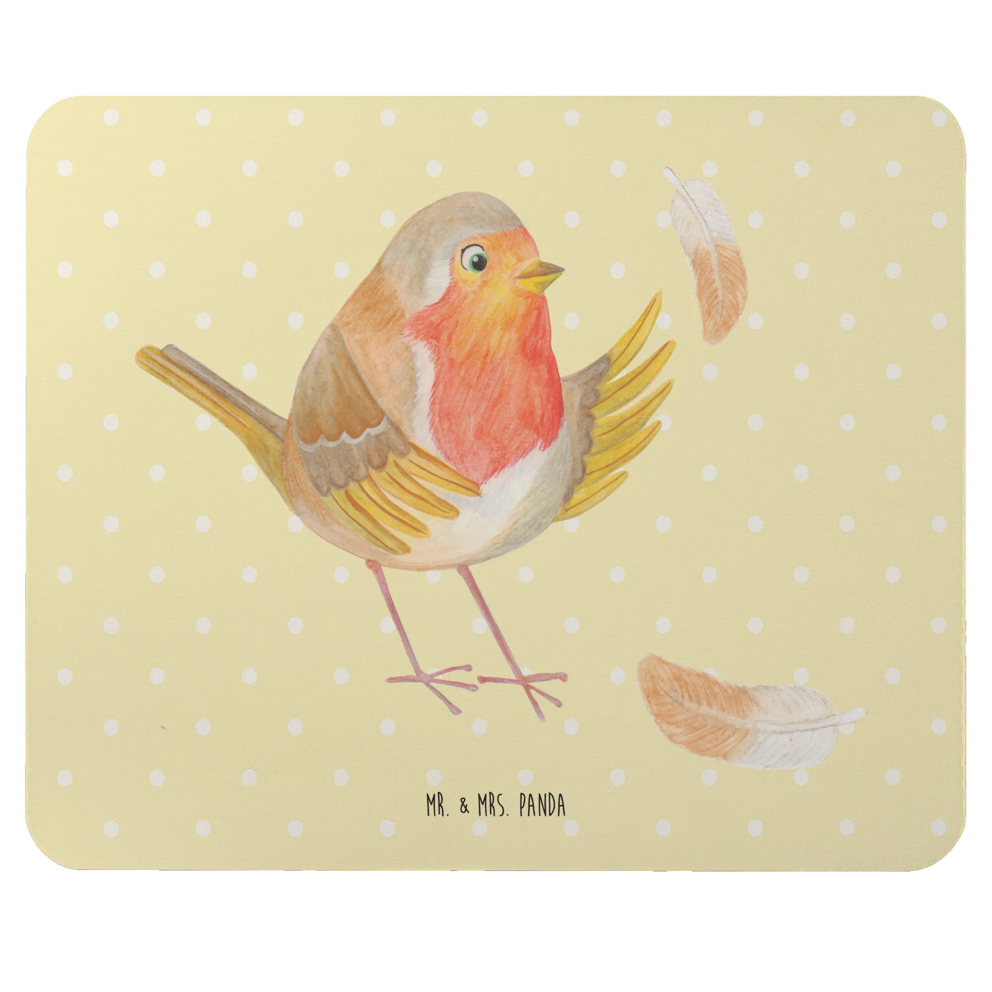 Mauspad Rotkehlchen mit Federn - mit Spruch - Gelb Pastell