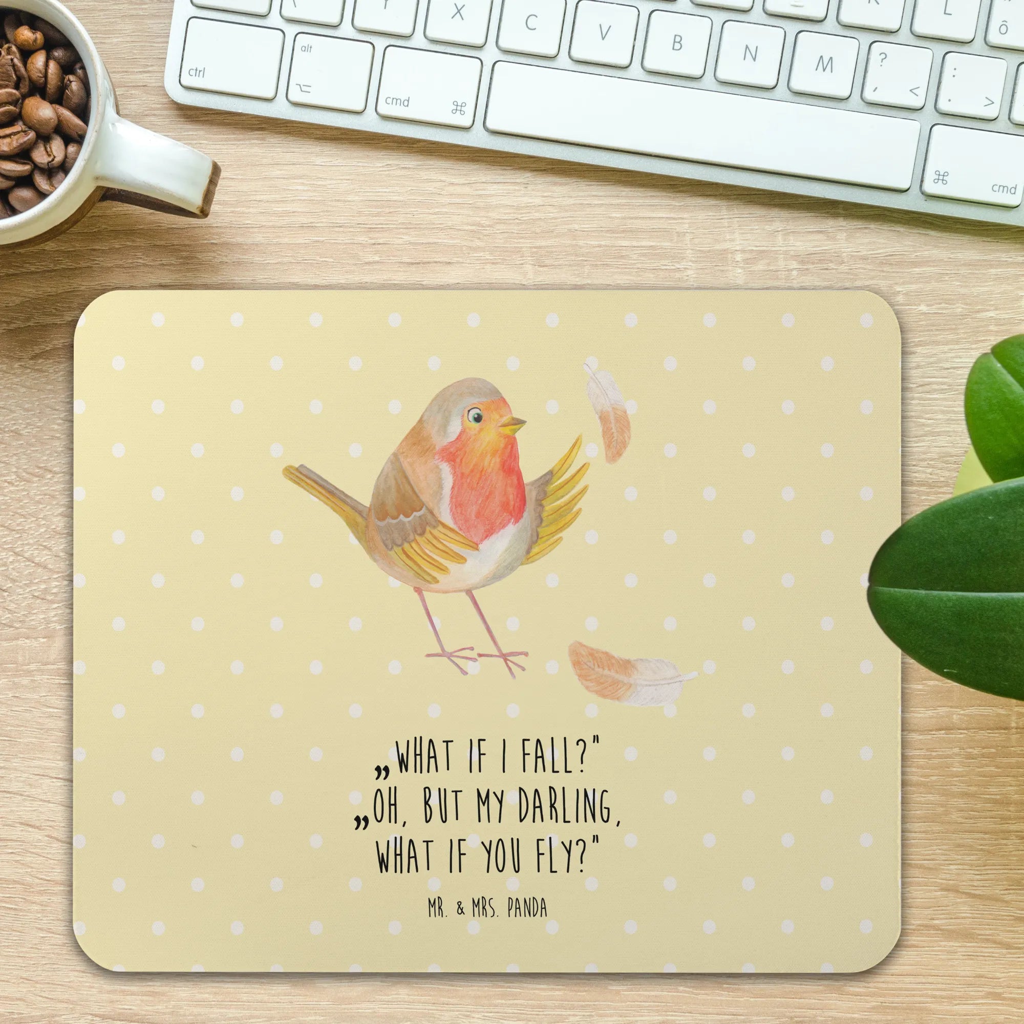 Suchst du nach dem perfekten Geschenk für jemanden, der das Arbeiten am Computer liebt? Dann ist das Mauspad „Rotkehlchen mit Federn“ aus der Kollektion Small World von Mr. & Mrs. Panda genau das Richtige für dich!
