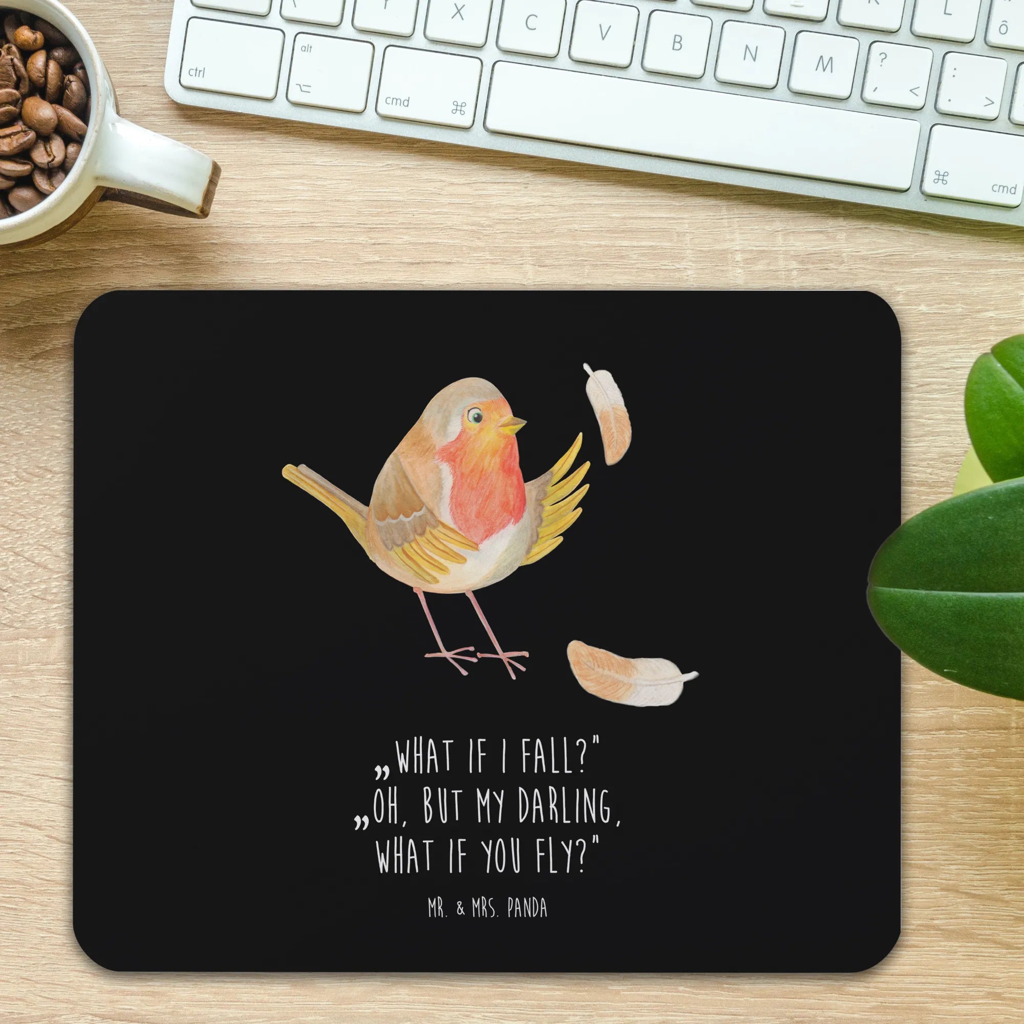 Das süße Rotkehlchen, das von Mrs. Panda liebevoll gezeichnet wurde, schafft eine positive Atmosphäre in deinem Arbeitszimmer. Der Spruch „What if I fall? Oh, but my darling, what if you fly?“ inspiriert und motiviert jeden, der an seinem Schreibtisch sitzt.