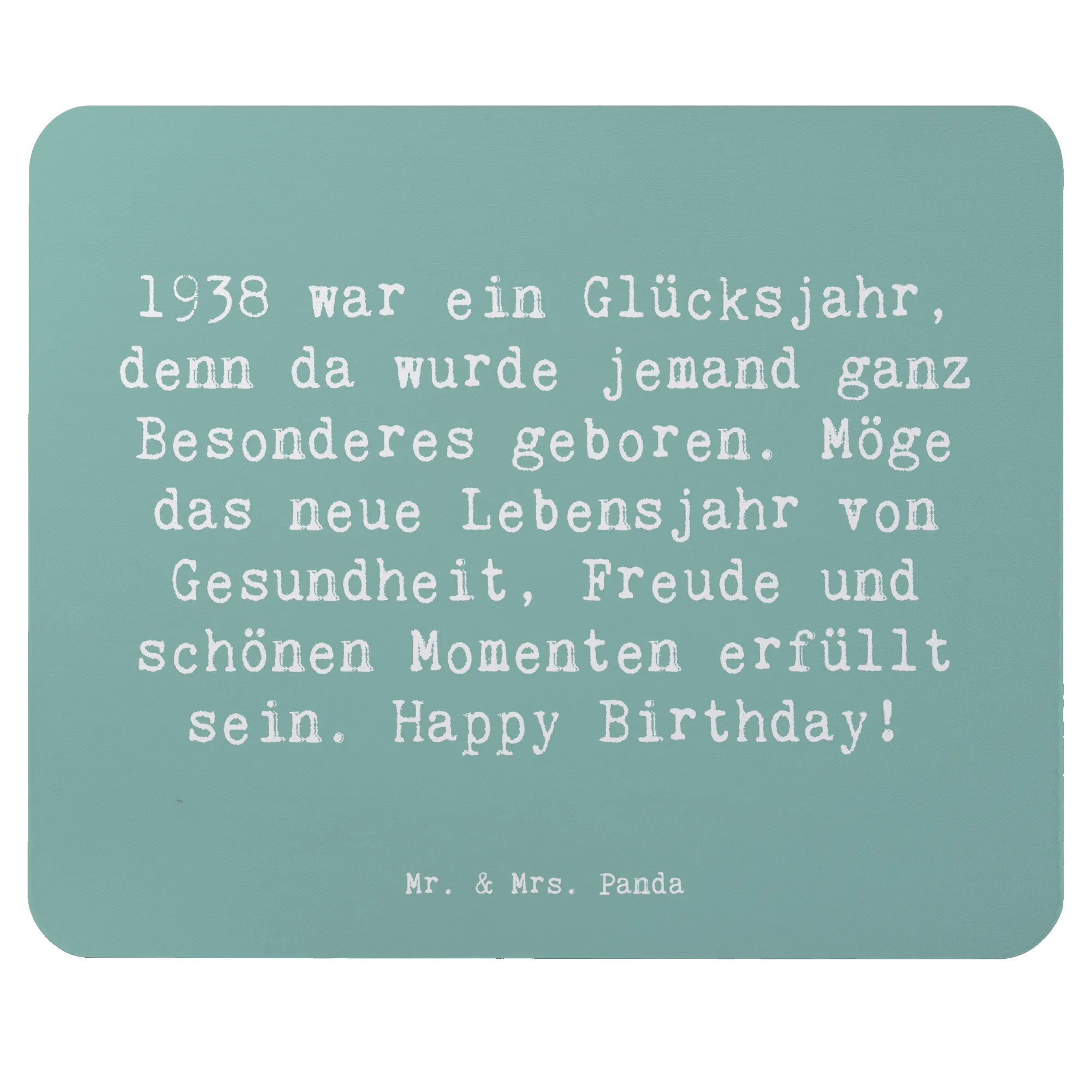 Dieses Mauspad eignet sich hervorragend als Geschenk zum Geburtstag oder zum Ehrentag eines besonderen Menschen. Es kommt in einer liebevollen Kollektion von Mr. & Mrs. Panda, die speziell für Geburtstagsgeschenke und für Menschen, die 1938 geboren wurden, entworfen wurde. Es erzählt nicht nur die Geschichte eines Geburtsjahres, sondern wünscht auch Freude, Gesundheit und unvergessliche Momente für das neue Lebensjahr.