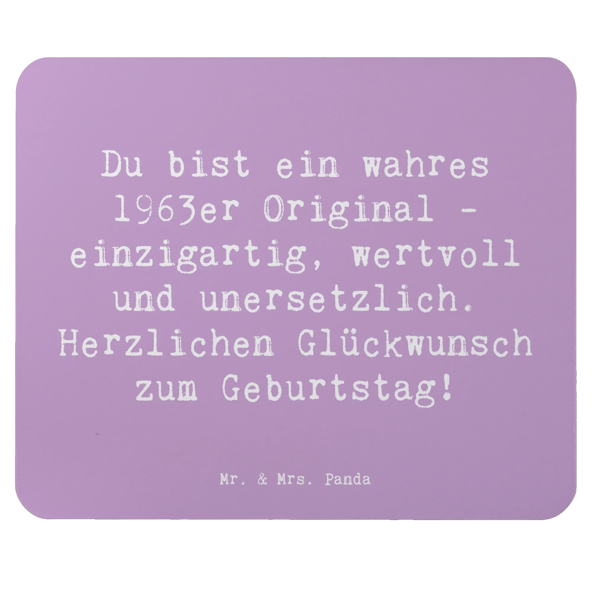 Das Mauspad "Du bist ein wahres 1963er Original - einzigartig, wertvoll und unersetzlich. Herzlichen Glückwunsch zum Geburtstag!" von Mr. & Mrs. Panda ist das perfekte Geschenk für alle, die 1963 das Licht der Welt erblickt haben. Egal ob zum Geburtstag, zur Feier eines besonderen Jubiläums oder einfach nur um einer geliebten Person eine Freude zu machen – dieses und mehr aus unserer wunderschönen Geburtstag Geburtsjahr Kollektion wird einzigartig geschätzt!
