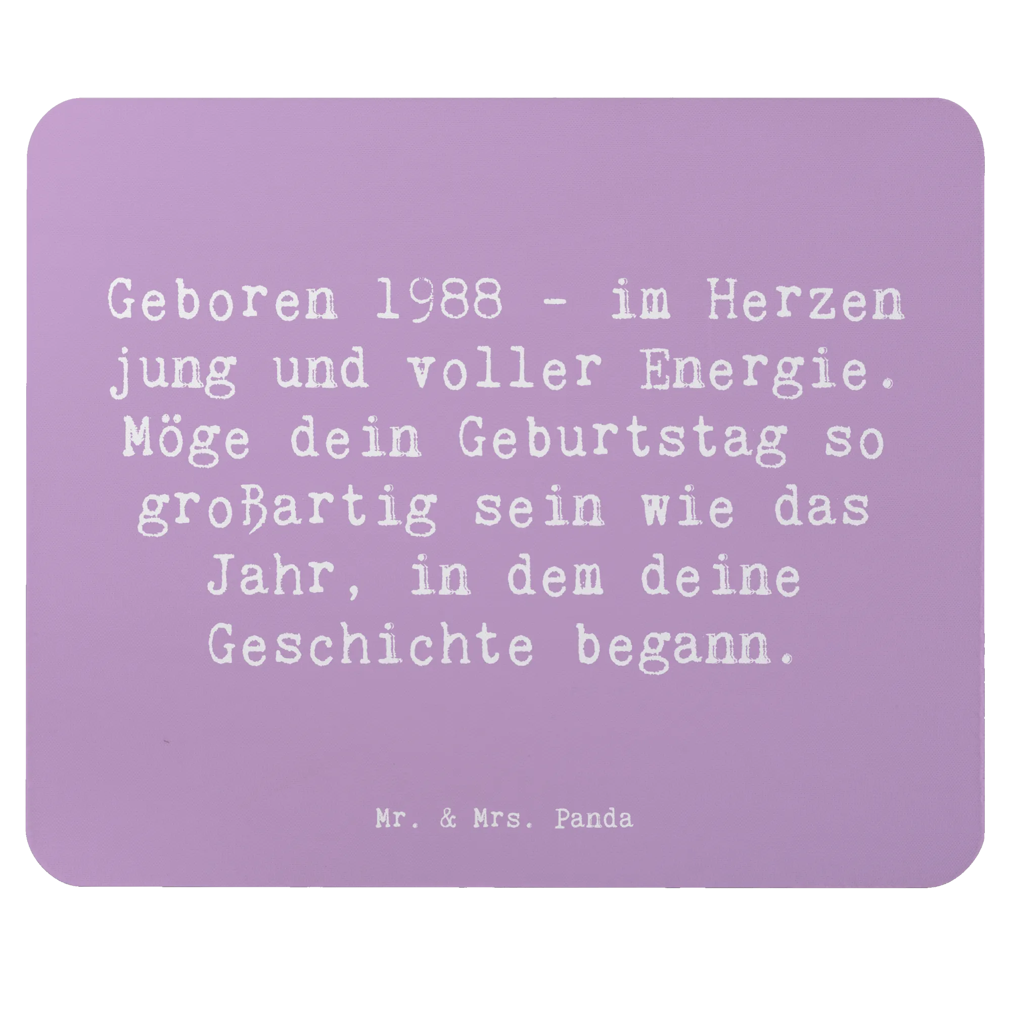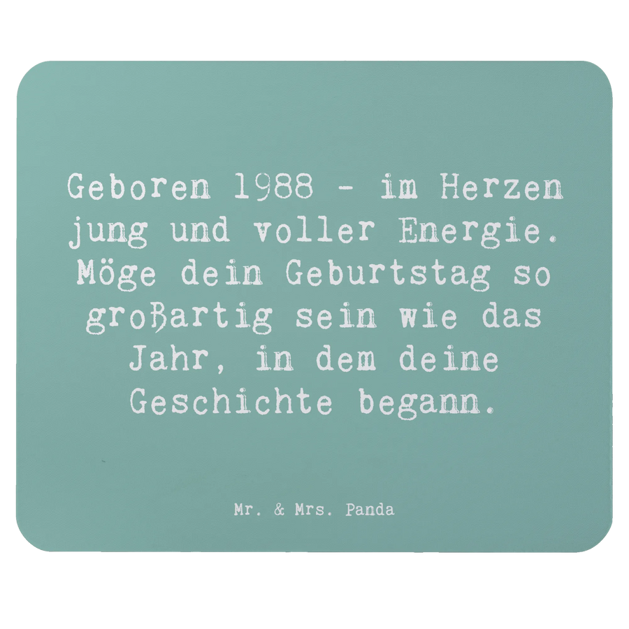 Suchst du nach dem perfekten Geschenk für einen besonderen Menschen, der 1988 geboren wurde? Dann ist das Mauspad von Mr. & Mrs. Panda mit dem Motto "Geboren 1988 - im Herzen jung und voller Energie" genau das Richtige! Es ist nicht nur ein praktisches Büroaccessoire, sondern bringt auch eine persönliche Note in den Arbeitsalltag.