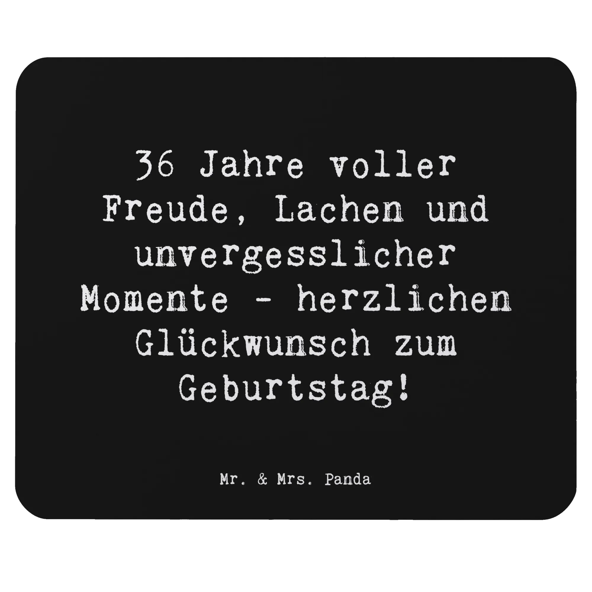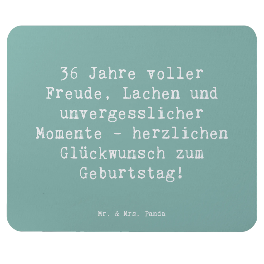 Suchst du das perfekte Geschenk zum 36. Geburtstag? Dann ist das Mauspad von Mr. & Mrs. Panda genau das Richtige für dich! Mit dem liebevollen Spruch "36 Jahre voller Freude, Lachen und unvergesslicher Momente - herzlichen Glückwunsch zum Geburtstag!" wird dieses Mauspad zu einem ganz besonderen Hingucker in jedem Büro oder Homeoffice. Es kombiniert Funktionalität mit einer Portion Herz.