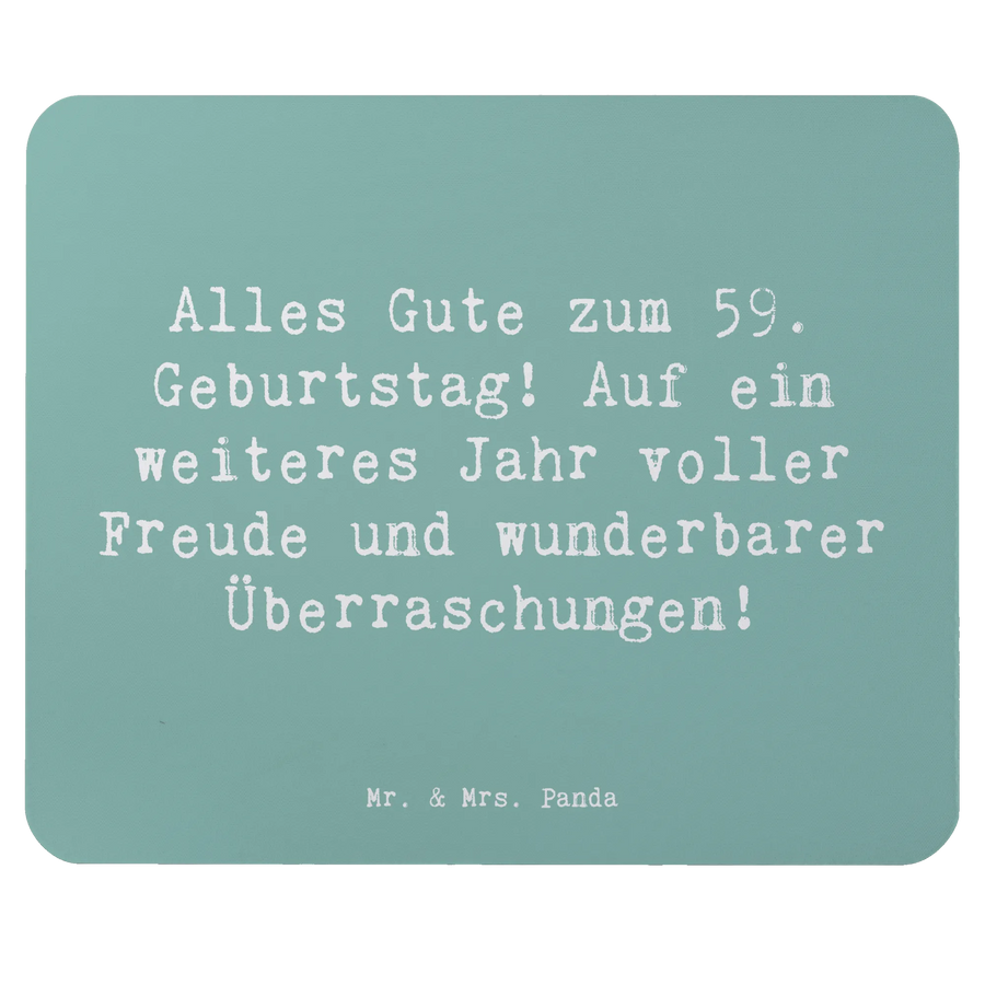Suchst du nach dem perfekten Geschenk für jemanden, der seinen 59. Geburtstag feiert? Dann kannst du mit unserem niedlichen Mauspad von Mr. & Mrs. Panda nichts falsch machen! Dieses besondere Mauspad ist nicht nur ein praktisches Zubehör für das Homeoffice oder das Büro, sondern auch ein liebevoll gestaltetes Geschenk, das Freude und Farbe in den Arbeitsalltag bringt. Bedruckt mit dem fröhlichen Spruch "Alles Gute zum 59. Geburtstag! Auf ein weiteres Jahr voller Freude und wunderbarer Überraschungen!", ist dieses Mauspad genau das richtige, um deinem liebsten Geburtstagskind ein Lächeln ins Gesicht zu zaubern.