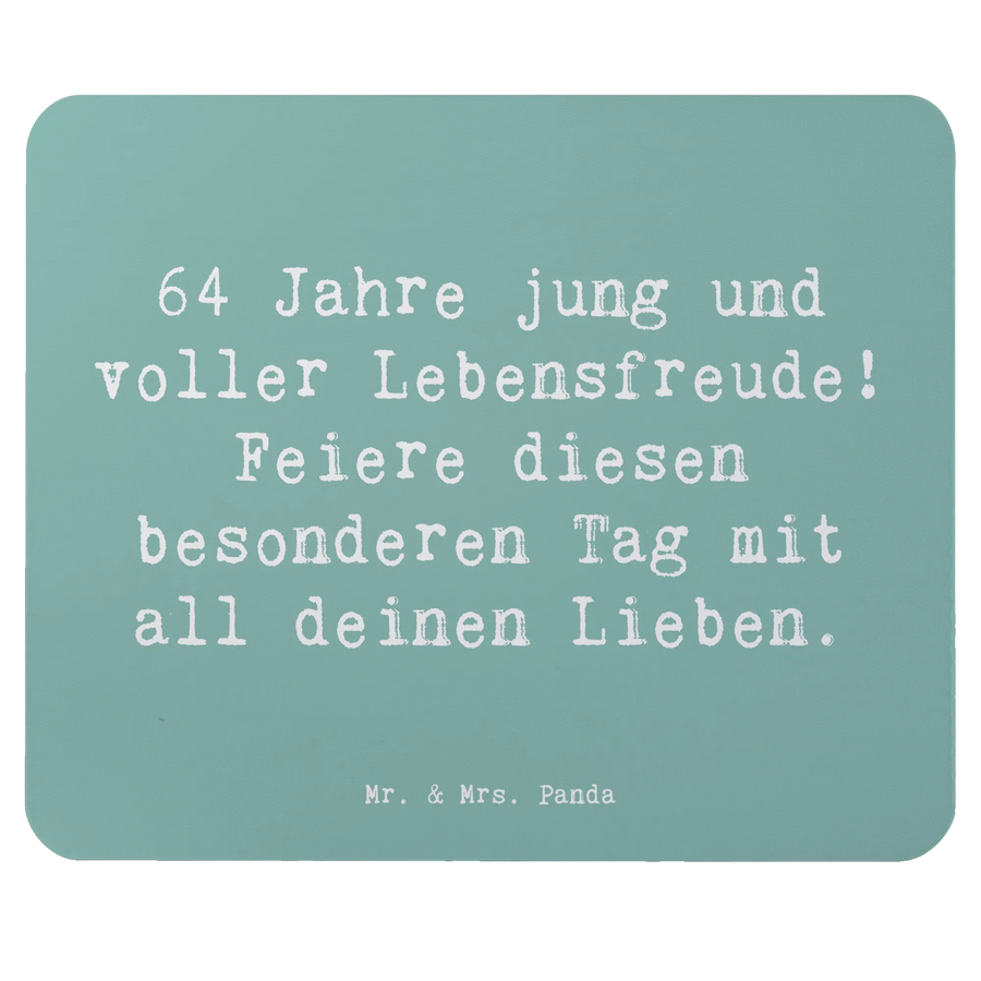 Das niedliche Spruchmotiv ist Teil unserer speziellen Kollektion für Geburtstage, die liebevoll von Mr. & Mrs. Panda erstellt wurde. Jeder Geburtstag verdient es, mit einem einzigartigen Geschenk gefeiert zu werden, das im Gedächtnis bleibt. Mach die Feier unvergesslich und bringe die Lebensfreude der 64 Jahre jung mit diesem schicken Mauspad zum Ausdruck!