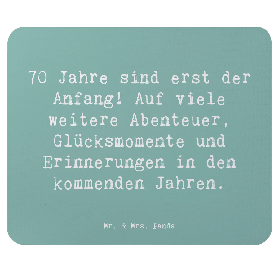 Suchst du nach dem perfekten Geschenk für den 70. Geburtstag eines lieben Menschen? Dann ist das wunderschöne Mauspad von Mr. & Mrs. Panda genau das richtige für dich! Mit seiner liebevollen Gestaltung und dem herzerwärmenden Spruch "70 Jahre sind erst der Anfang! Auf viele weitere Abenteuer, Glücksmomente und Erinnerungen in den kommenden Jahren." wird dieses Mauspad nicht nur den Arbeitsplatz verschönern, sondern auch Herzen erfreuen.