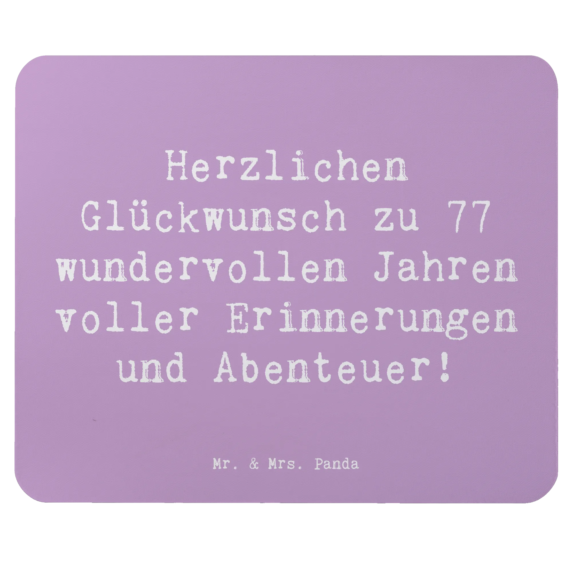Suchst du das perfekte Geschenk zum 77. Geburtstag? Dann ist das Mauspad von Mr. & Mrs. Panda genau das Richtige für dich! Mit dem liebevollen Spruch "Herzlichen Glückwunsch zu 77 wundervollen Jahren voller Erinnerungen und Abenteuer!" wird dieses Mauspad zum idealen Begleiter für jeden Computernutzer im Arbeitszimmer oder Homeoffice.