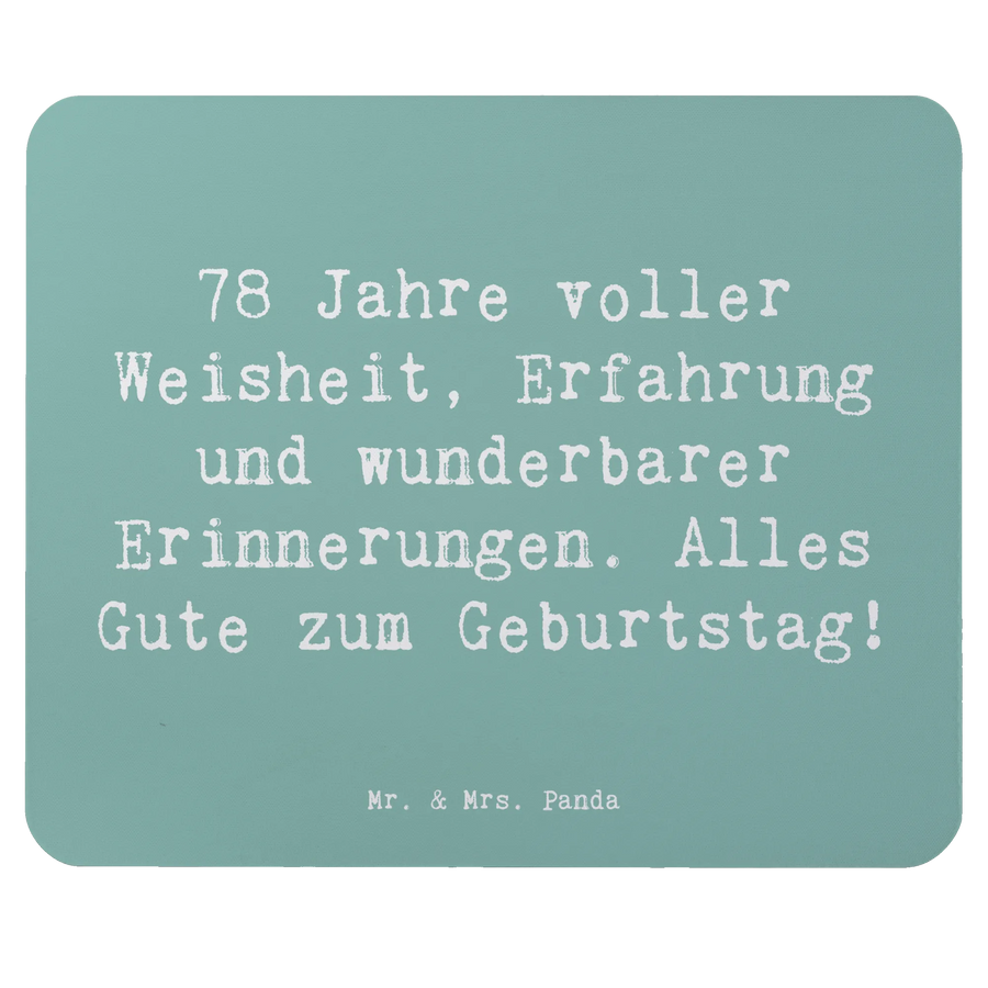 Das Mauspad „78 Jahre voller Weisheit, Erfahrung und wunderbarer Erinnerungen. Alles Gute zum Geburtstag!“ von Mr. & Mrs. Panda ist nicht nur ein praktisches PC Zubehör, sondern auch ein ganz besonderes Geschenk, das jedem Arbeitszimmer das gewisse Etwas verleiht!