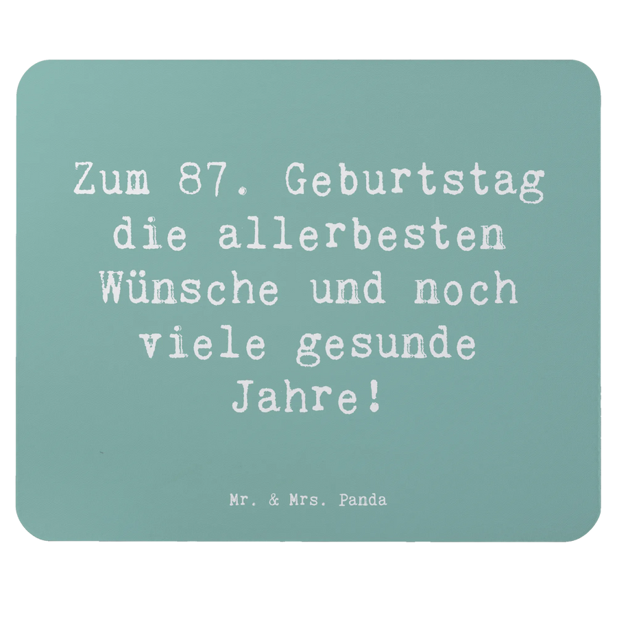 Suchst du das perfekte Geschenk zum 87. Geburtstag? Dann ist unser Mauspad von Mr. & Mrs. Panda genau das Richtige! Mit dem herzlichen Spruch "Zum 87. Geburtstag die allerbesten Wünsche und noch viele gesunde Jahre!" zaubert es ein Lächeln auf jedes Gesicht und sorgt für Freude am Arbeitsplatz oder im Homeoffice.