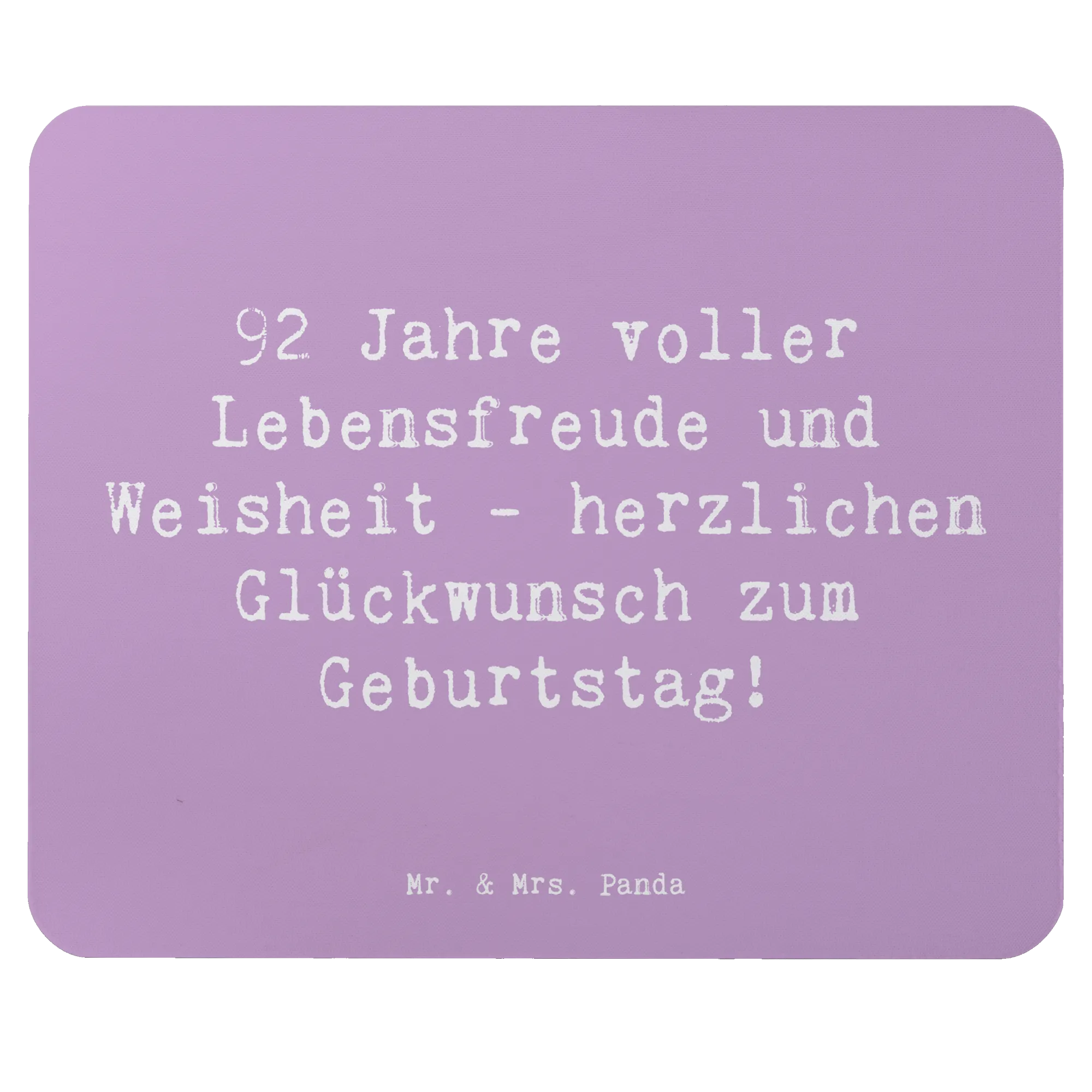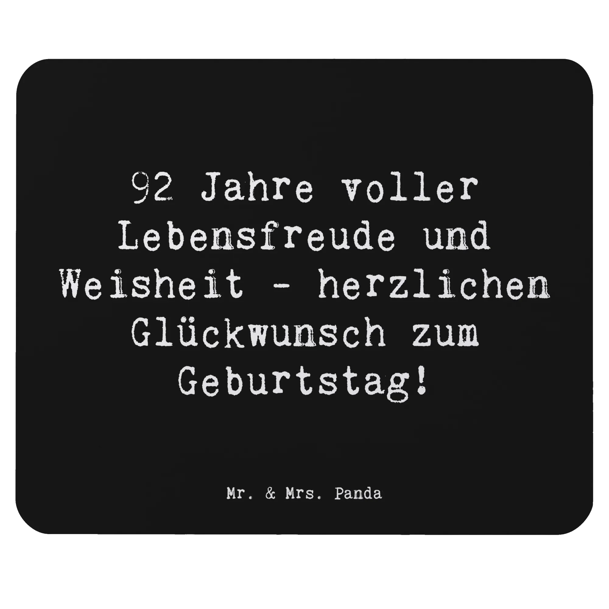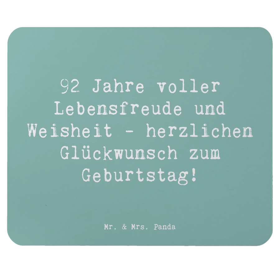 Das perfekte Geschenk für einen ganz besonderen 92. Geburtstag! Unser wunderschönes Mauspad von Mr. & Mrs. Panda wird den festlichen Anlass wunderbar unterstreichen. Mit dem liebevollen Spruch "92 Jahre voller Lebensfreude und Weisheit - herzlichen Glückwunsch zum Geburtstag!" sorgt es nicht nur für ein Lächeln, sondern erinnert auch daran, wie wertvoll die Zeit und die gemeinsamen Erinnerungen sind.