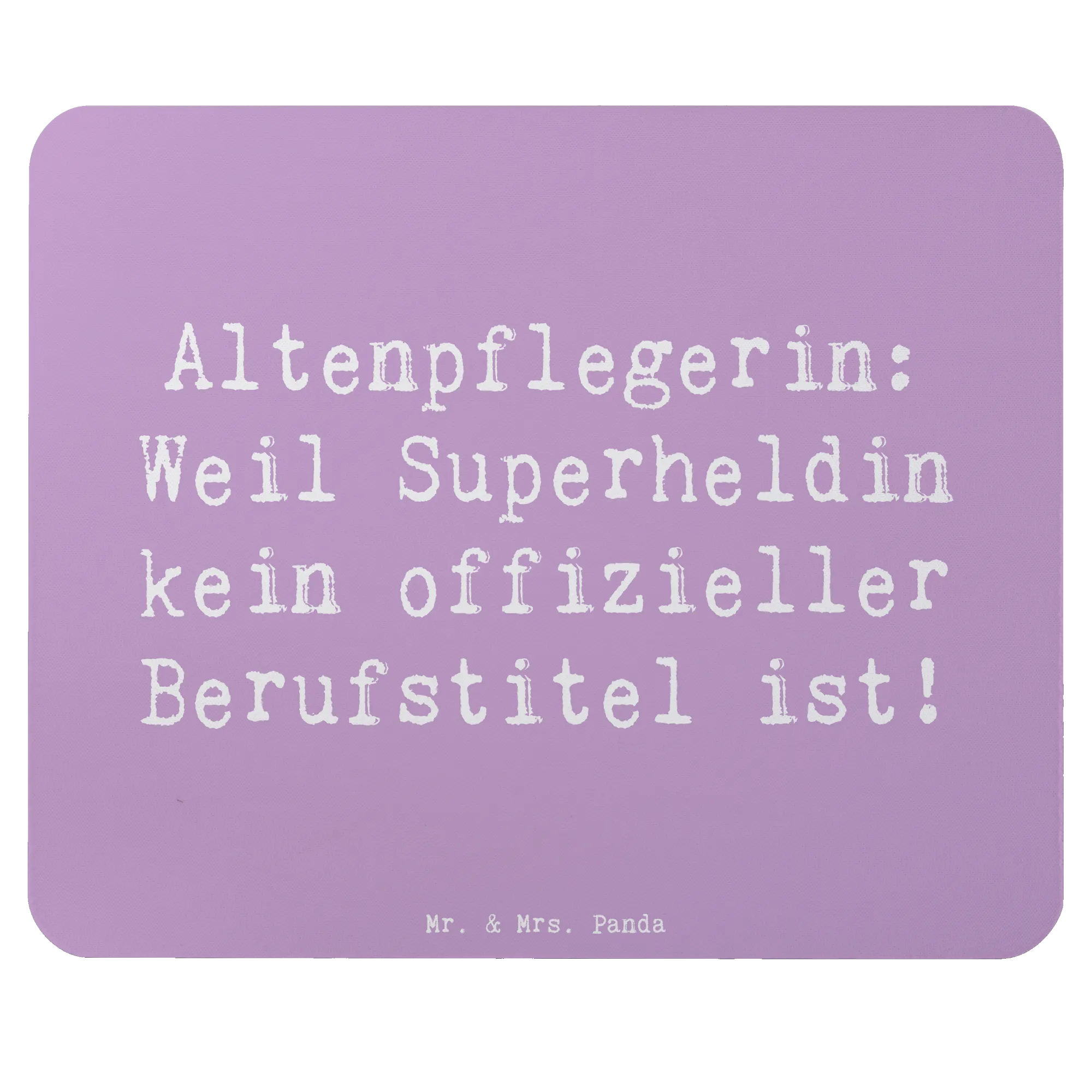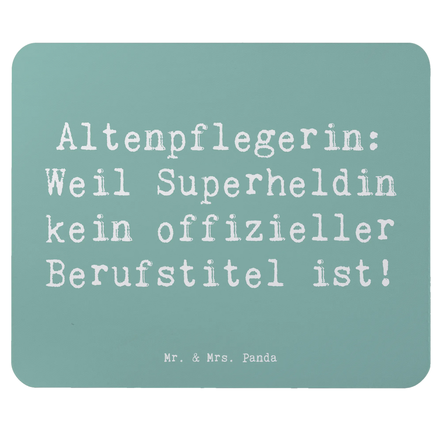 Mit dem Mauspad "Altenpflegerin: Weil Superheldin kein offizieller Berufstitel ist!" machst Du nicht nur einen praktischen, sondern auch einen sehr persönlichen Geschenk. Zeige Deine Wertschätzung für das unglaubliche Engagement, das Altenpfleger in ihrem Beruf zeigen. So wird Dein Geschenk nicht nur benutzt, sondern bekommt auch einen emotionalen Wert. Entdecke jetzt die Welt der Berufe von Mr. & Mrs. Panda und bereite Dir oder Deinen Liebsten eine Freude!