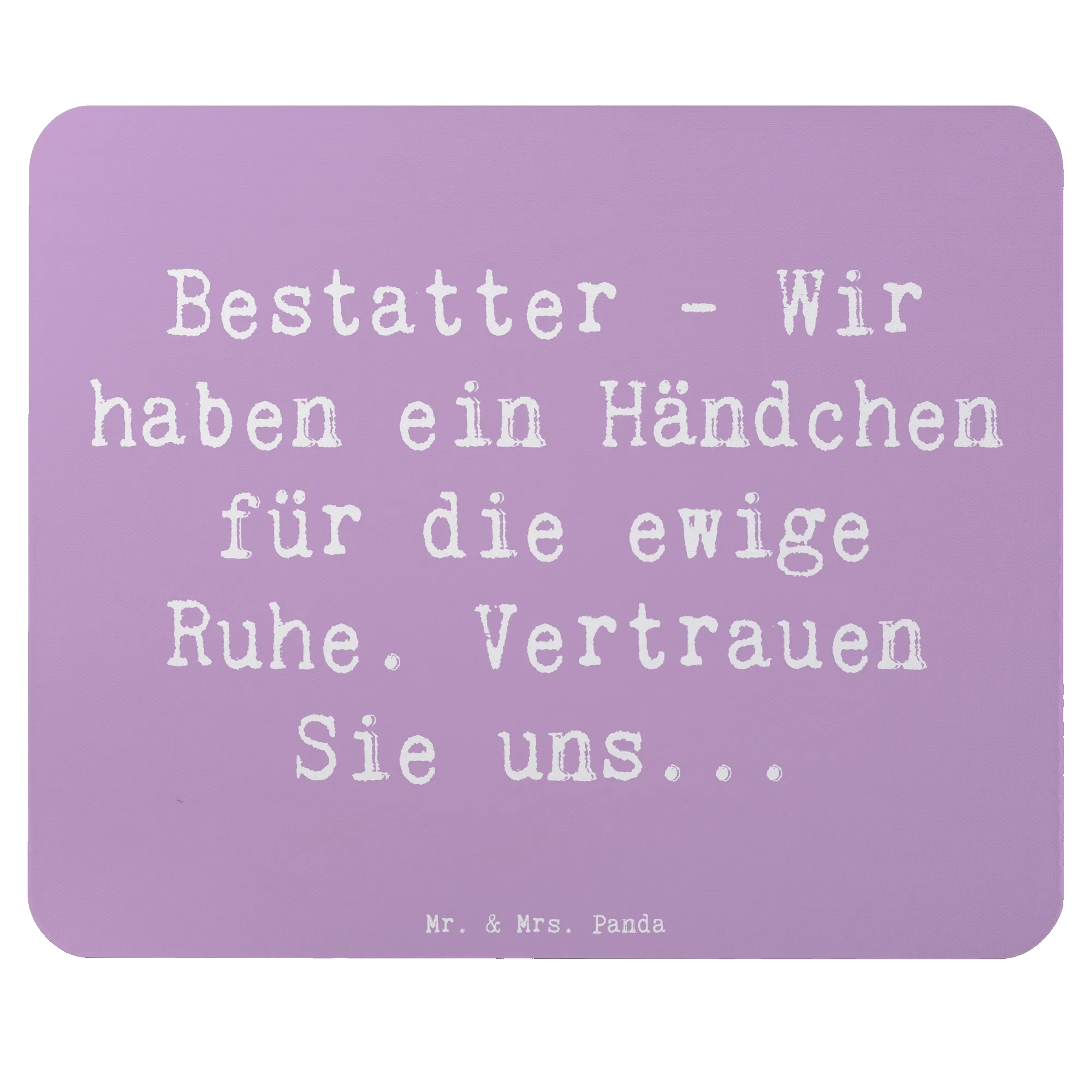 Das Mr. & Mrs. Panda Mauspad mit dem liebevollen Motiv "Bestatter - Wir haben ein Händchen für die ewige Ruhe. Vertrauen Sie uns..." ist der perfekte Begleiter für alle, die im Bestattungswesen tätig sind oder enge Beziehungen zu diesem Beruf haben.