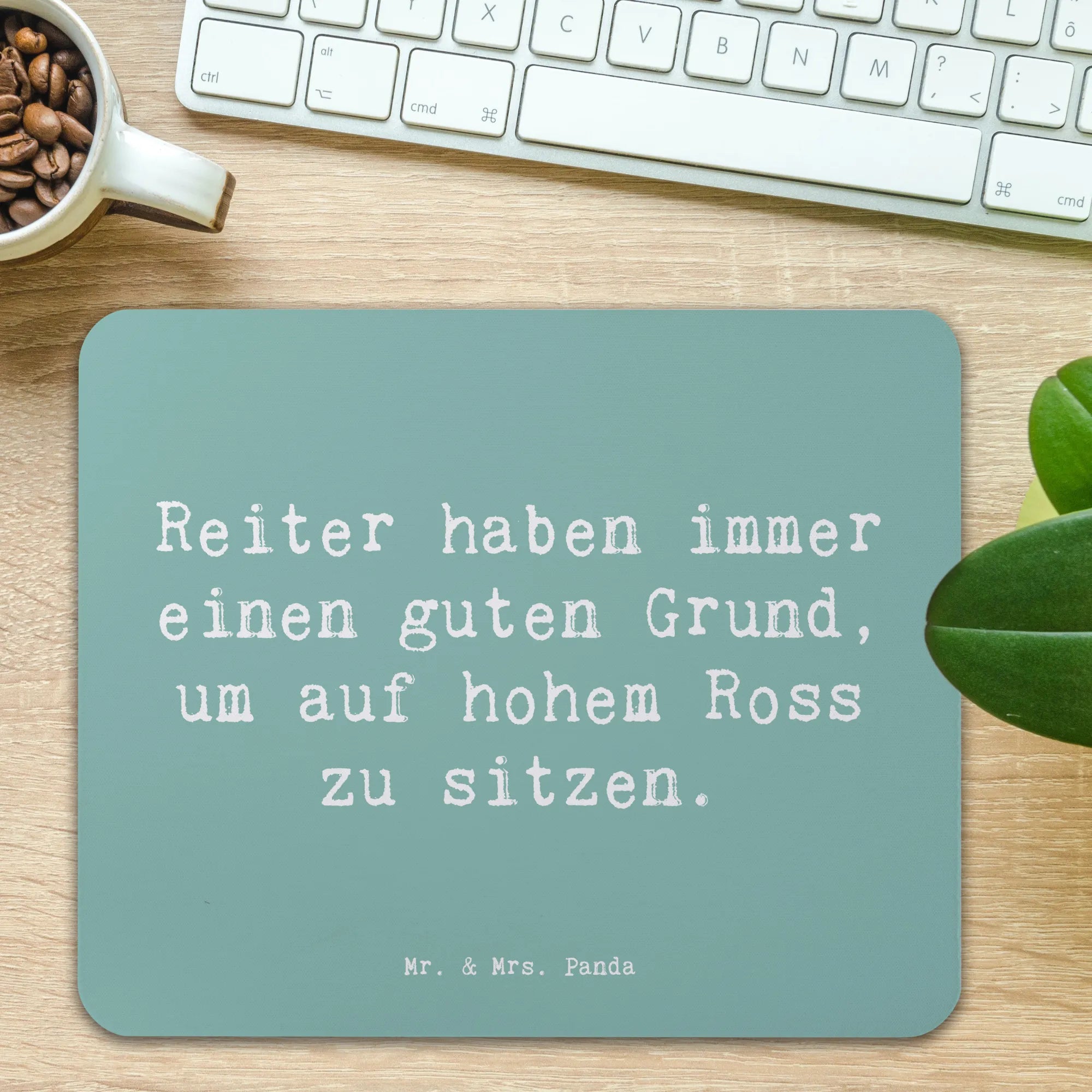 Das perfekte Geschenk für alle Reitsportliebhaber: unser bezauberndes Mauspad von Mr. & Mrs. Panda! Mit dem liebevollen Motiv "Reiter haben immer einen guten Grund, um auf hohem Ross zu sitzen" bringt es nicht nur Freude in jeden Büro- oder Homeoffice-Alltag, sondern sorgt auch für einen stilvollen Akzent auf deinem Schreibtisch.
