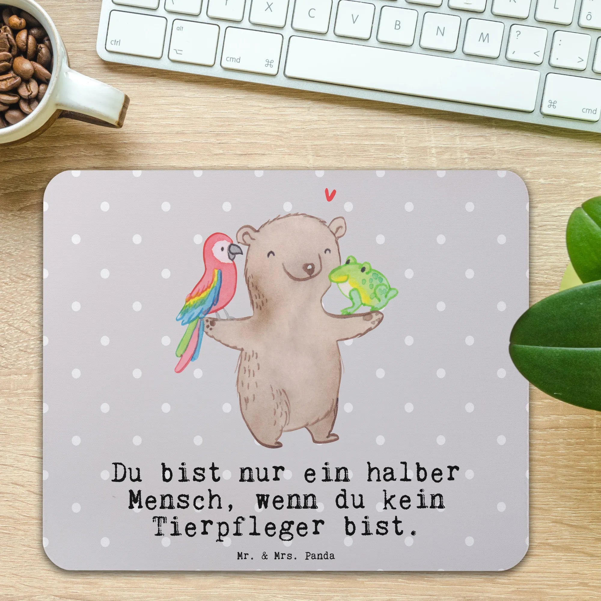 Mauspad Tierpfleger mit Herz - Grau Pastell