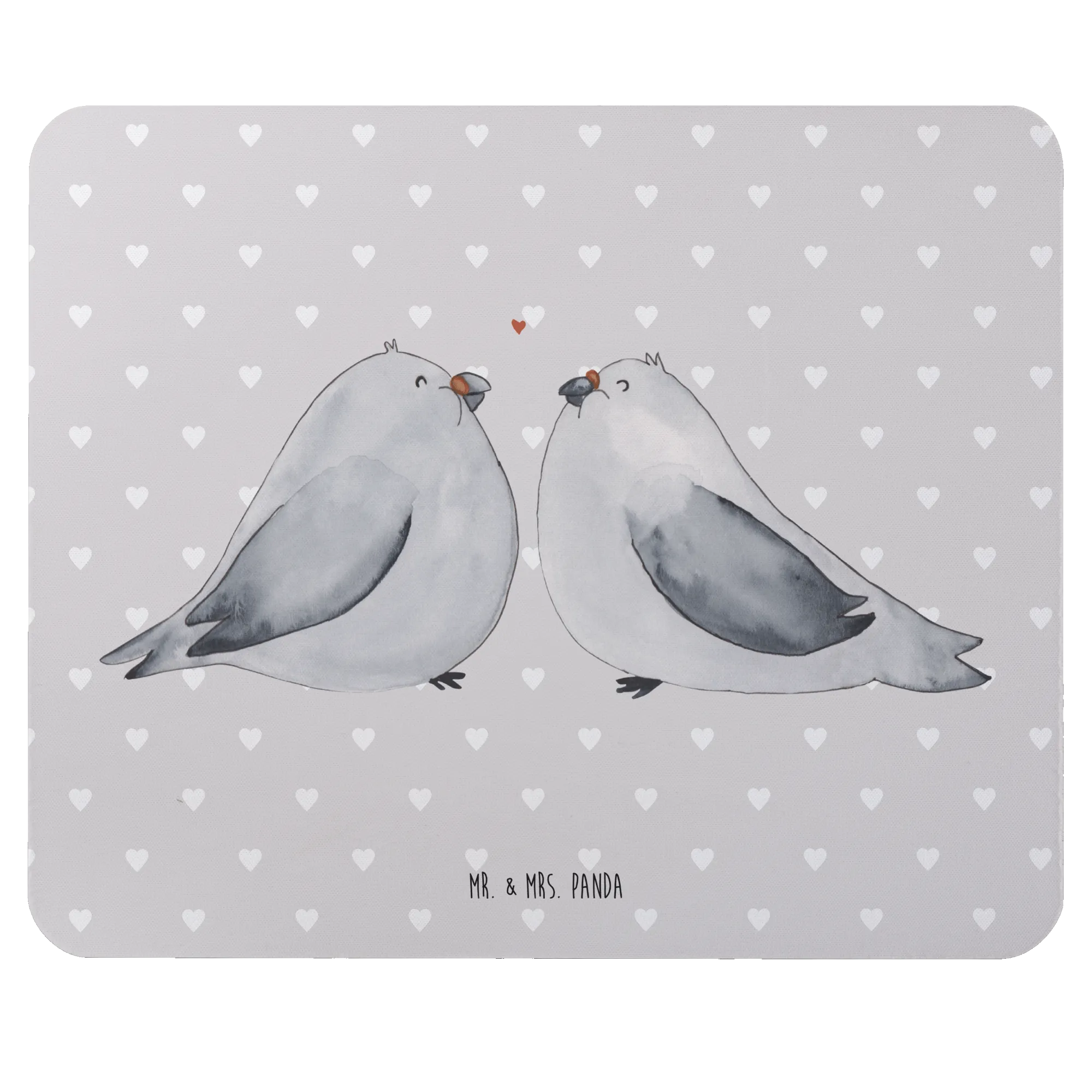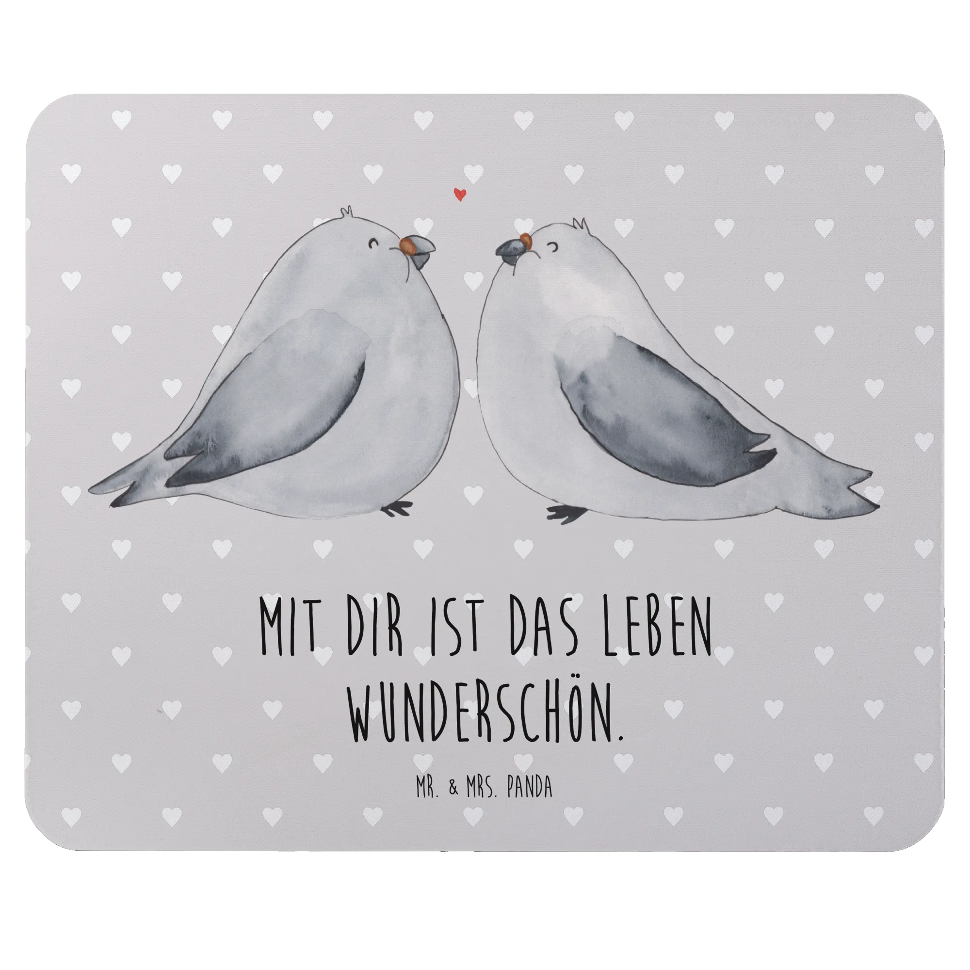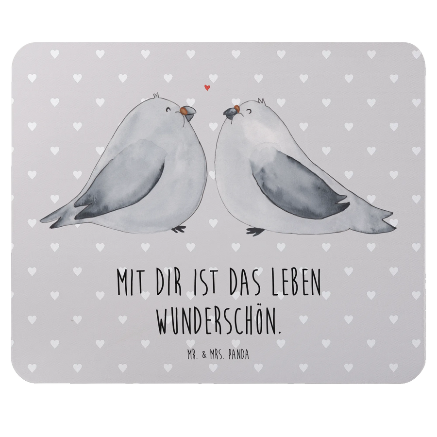 Mauspad Turteltauben Liebe - mit Spruch - Grau Pastell