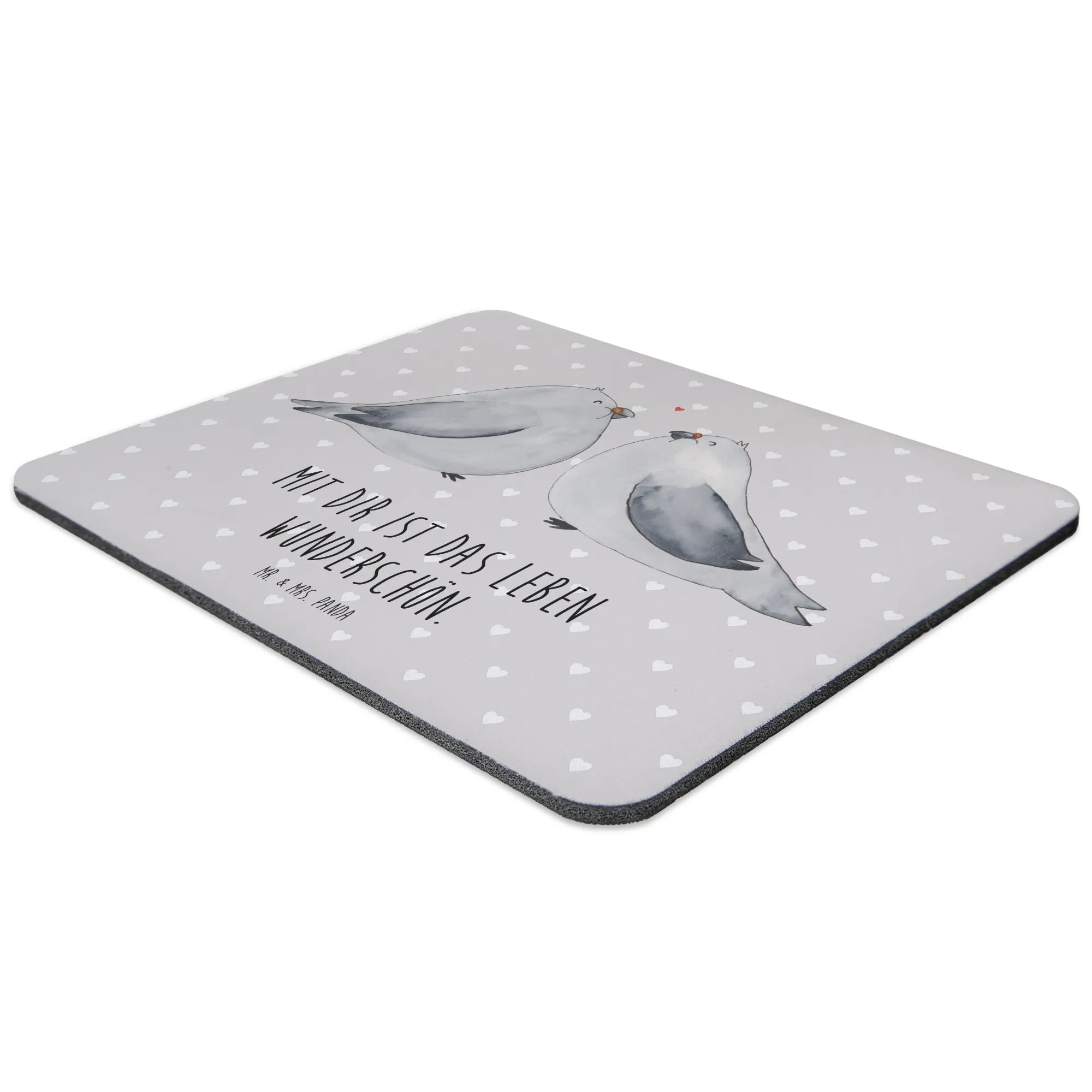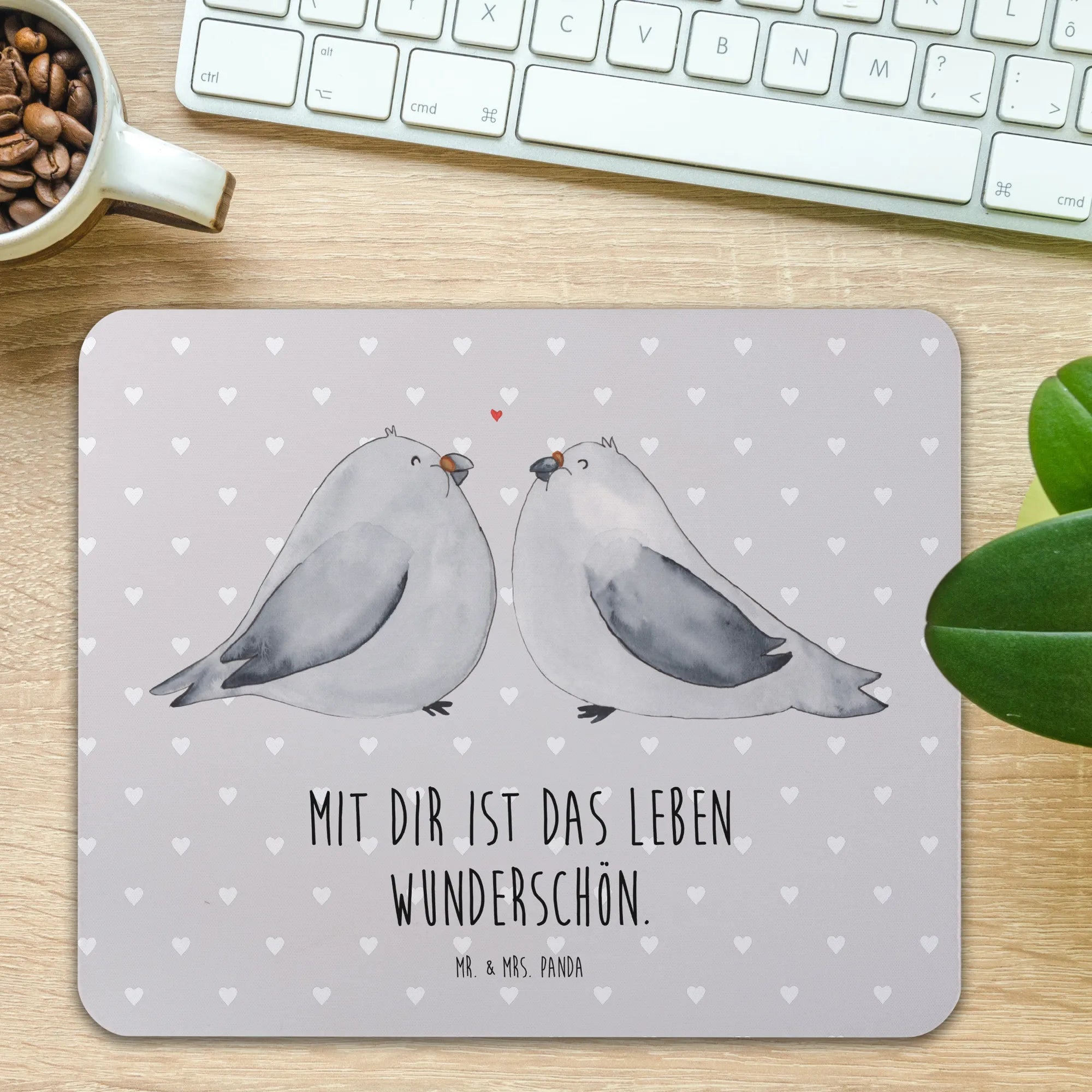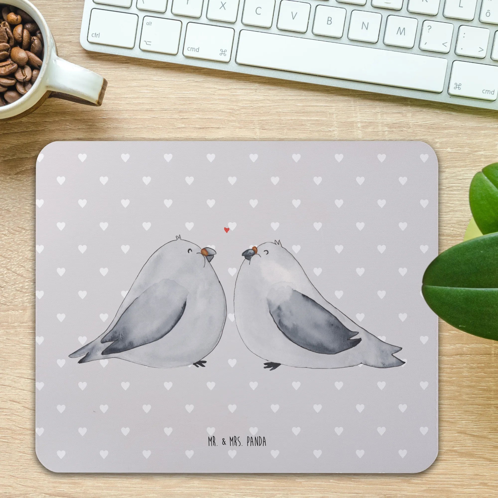 Mauspad Turteltauben Liebe - mit Spruch - Grau Pastell