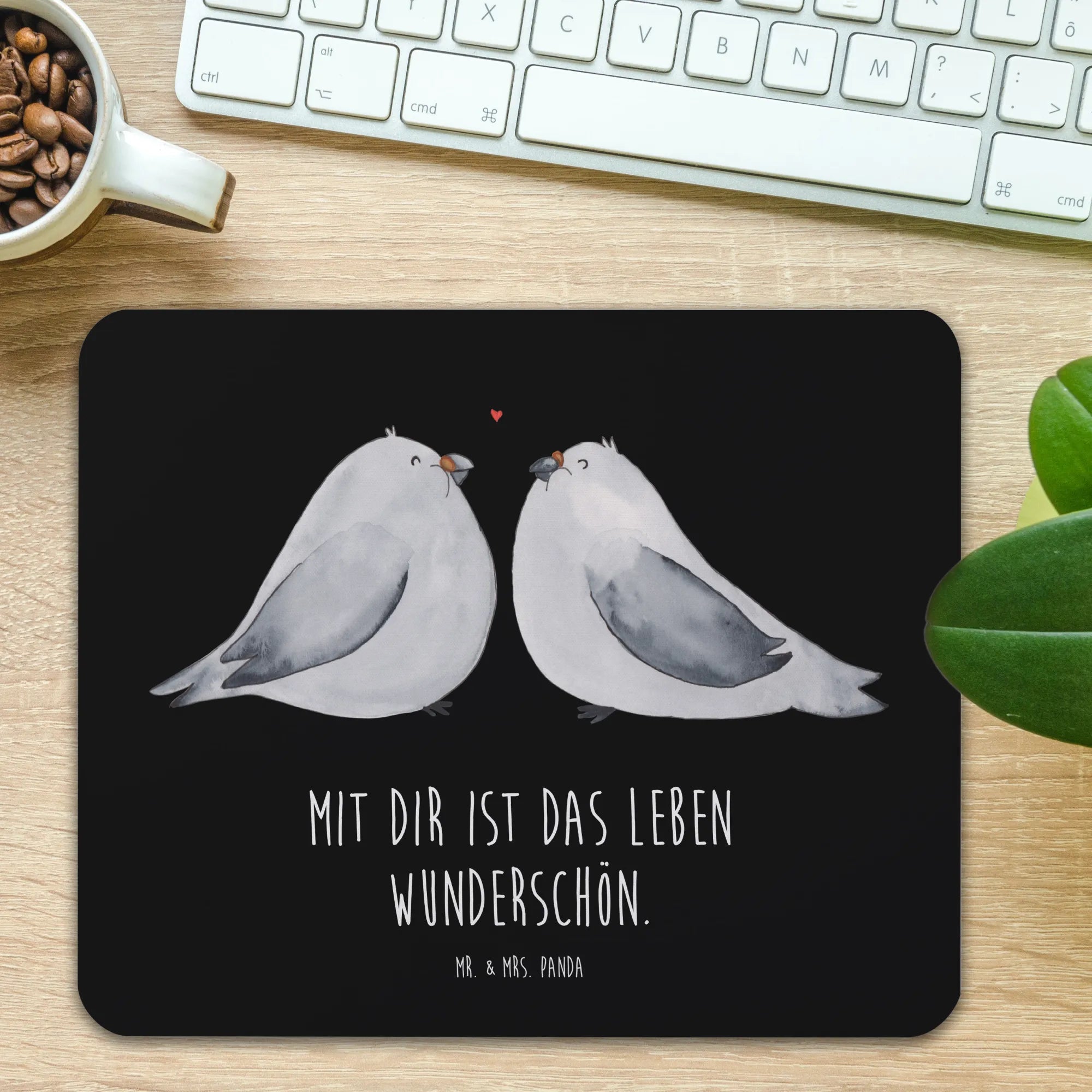 Entdecke das zauberhafte Mauspad mit dem Motiv der Turteltauben von Mr. & Mrs. Panda – das perfekte Geschenk für alle Verliebten! Mit einer liebevollen Illustration von zwei süßen Turteltäubchen, die sich zärtlich zuneigen und ein kleines rotes Herz zwischen sich haben, strahlt dieses Mauspad pure Liebe aus.