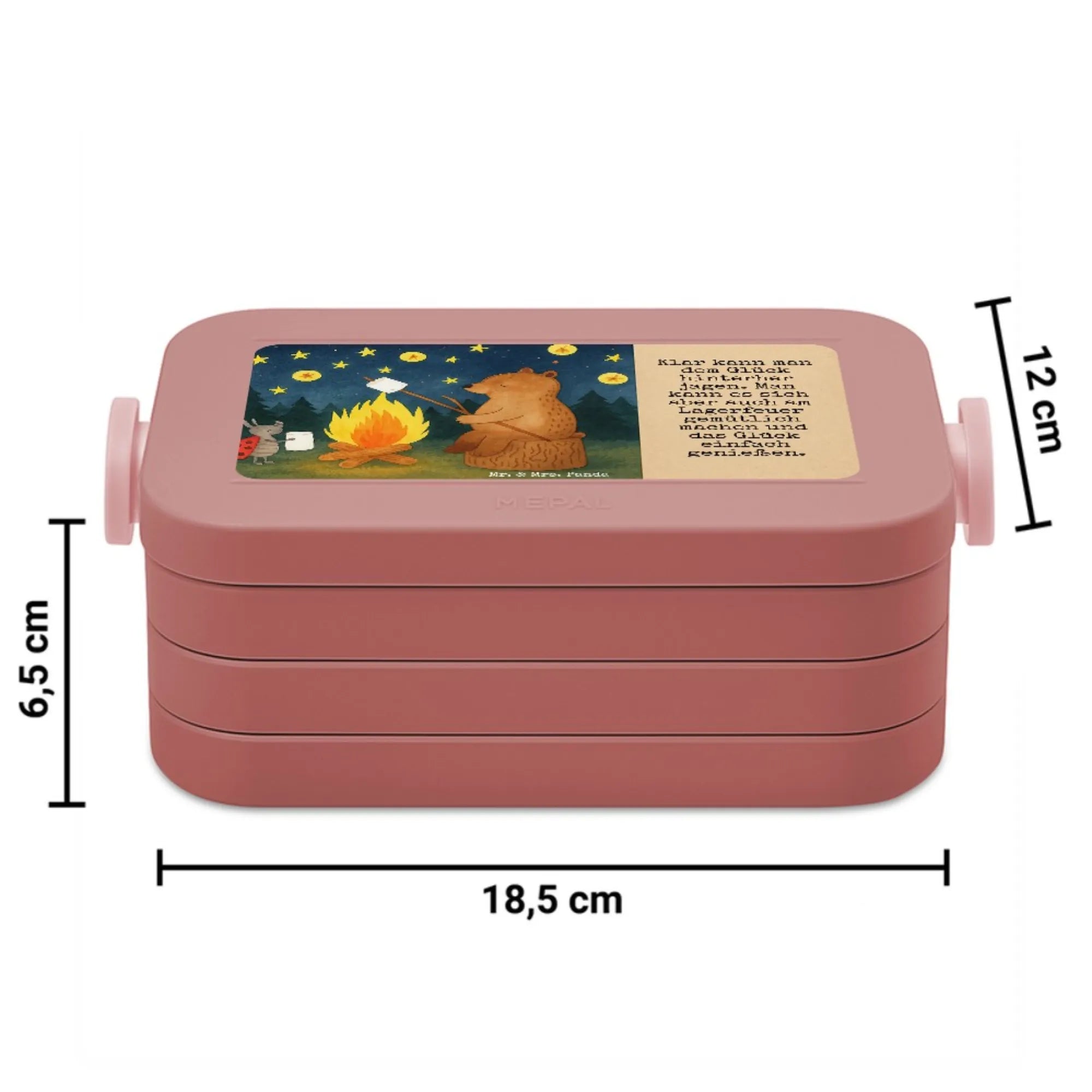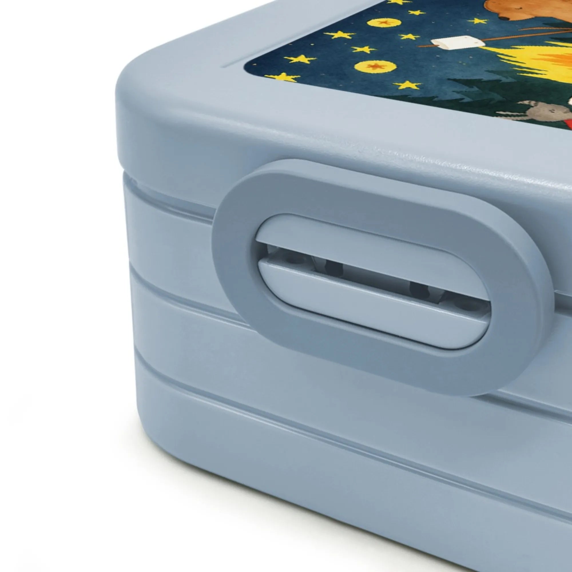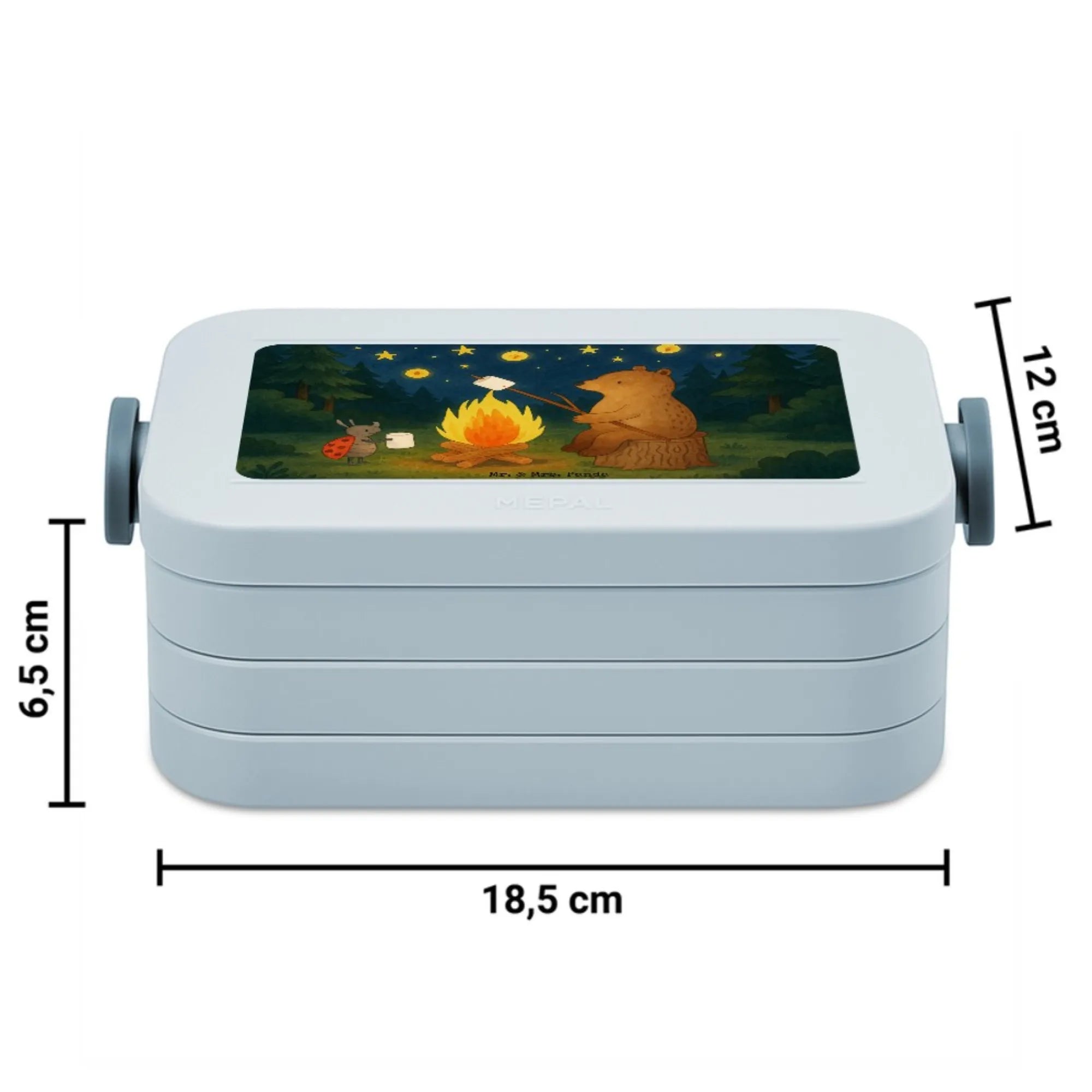 Lunchbox Bär & Marienkäfer Lagerfeuer Design - mit Spruch - Blau Pastell