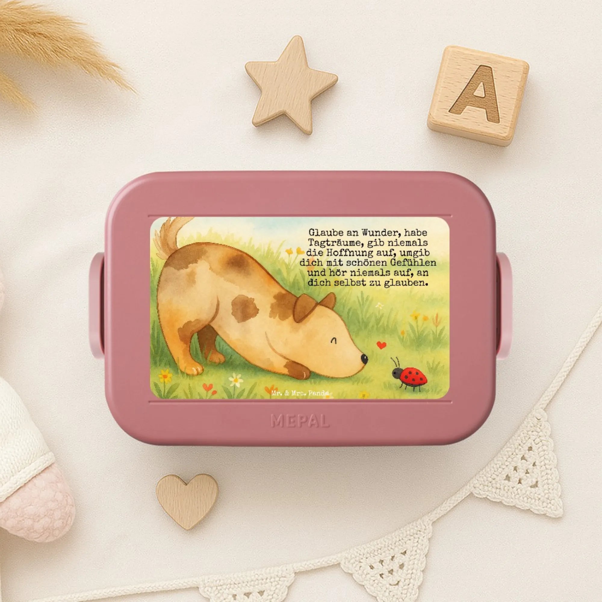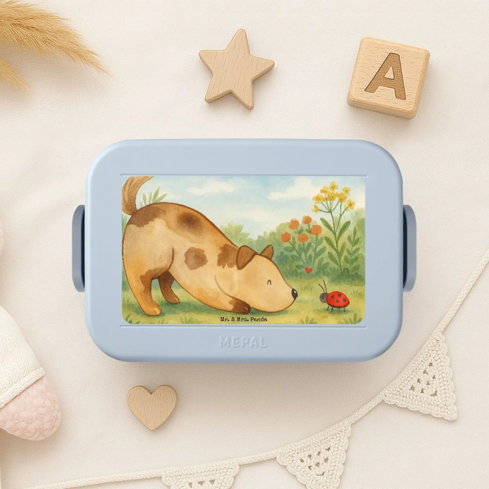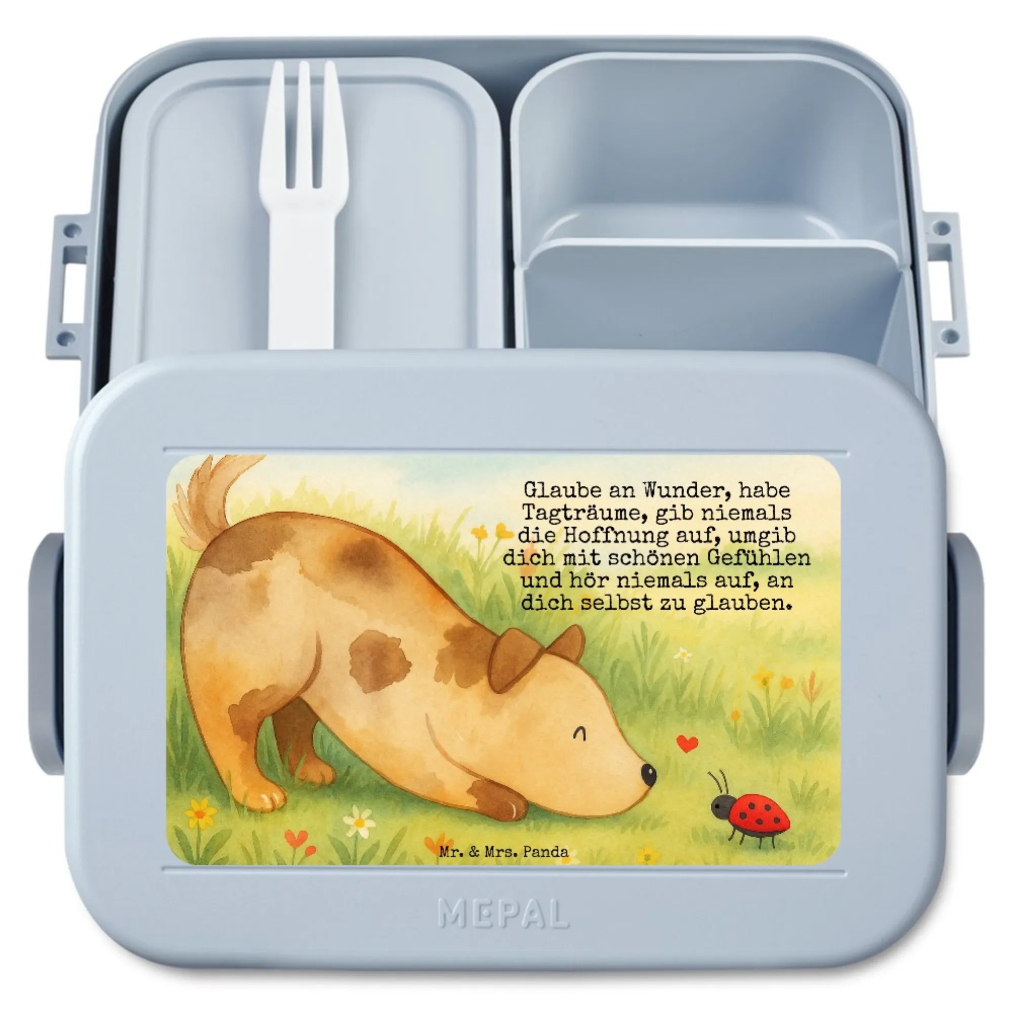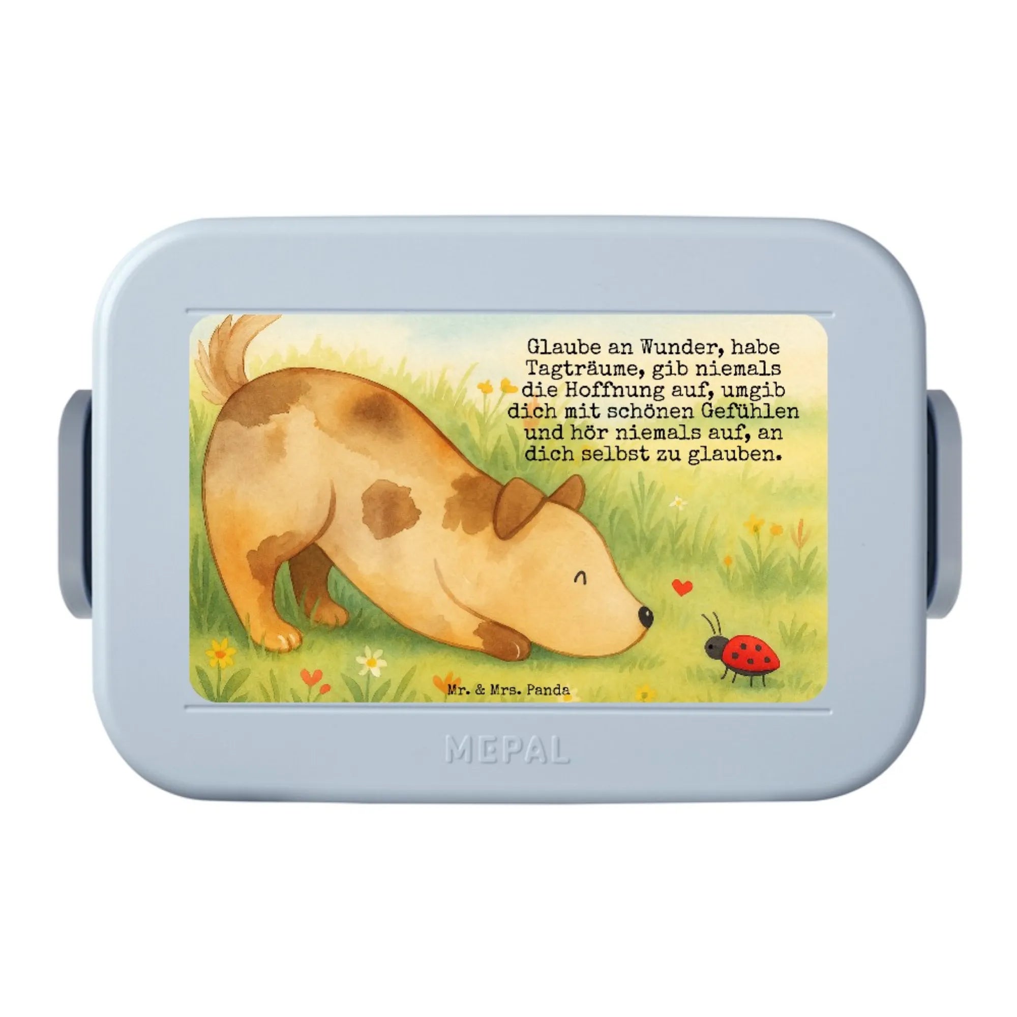 Bento Box Hund Marienkäfer Design - mit Spruch - Blau Pastell