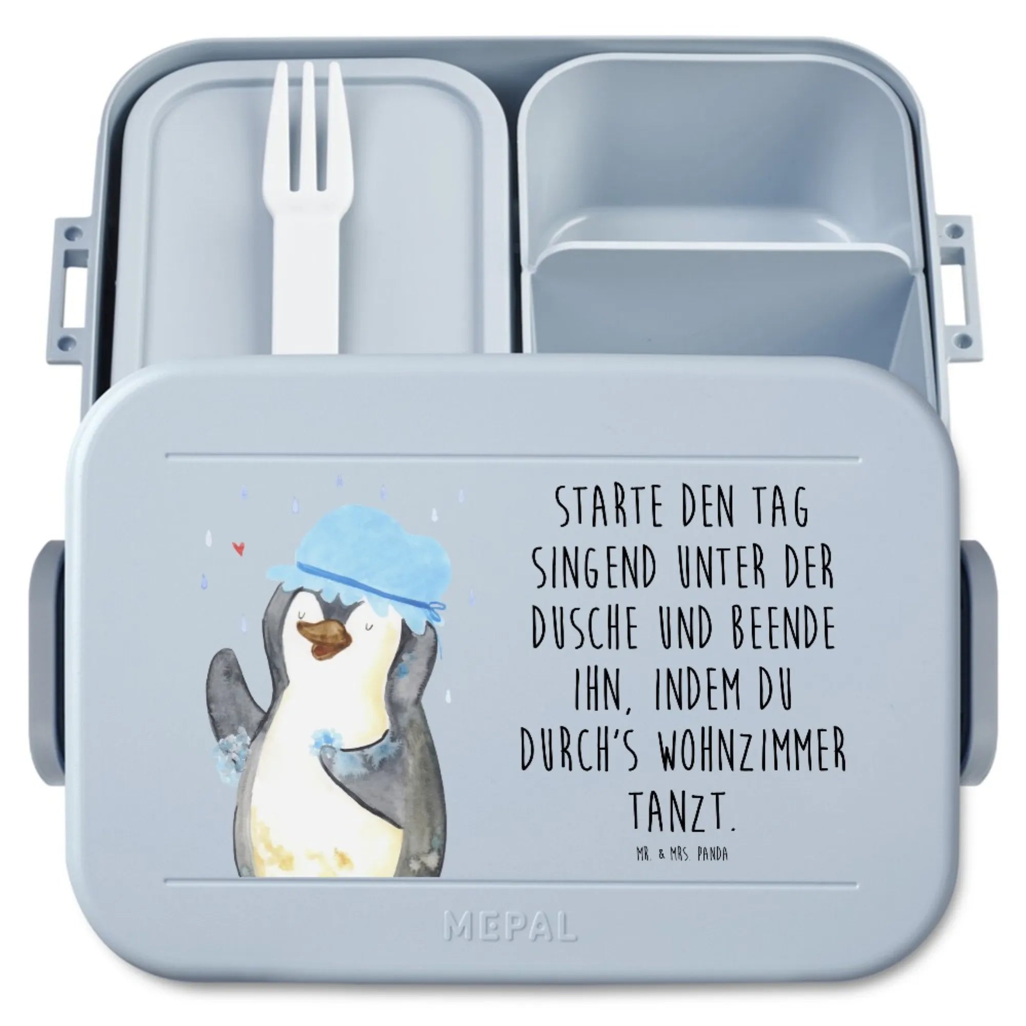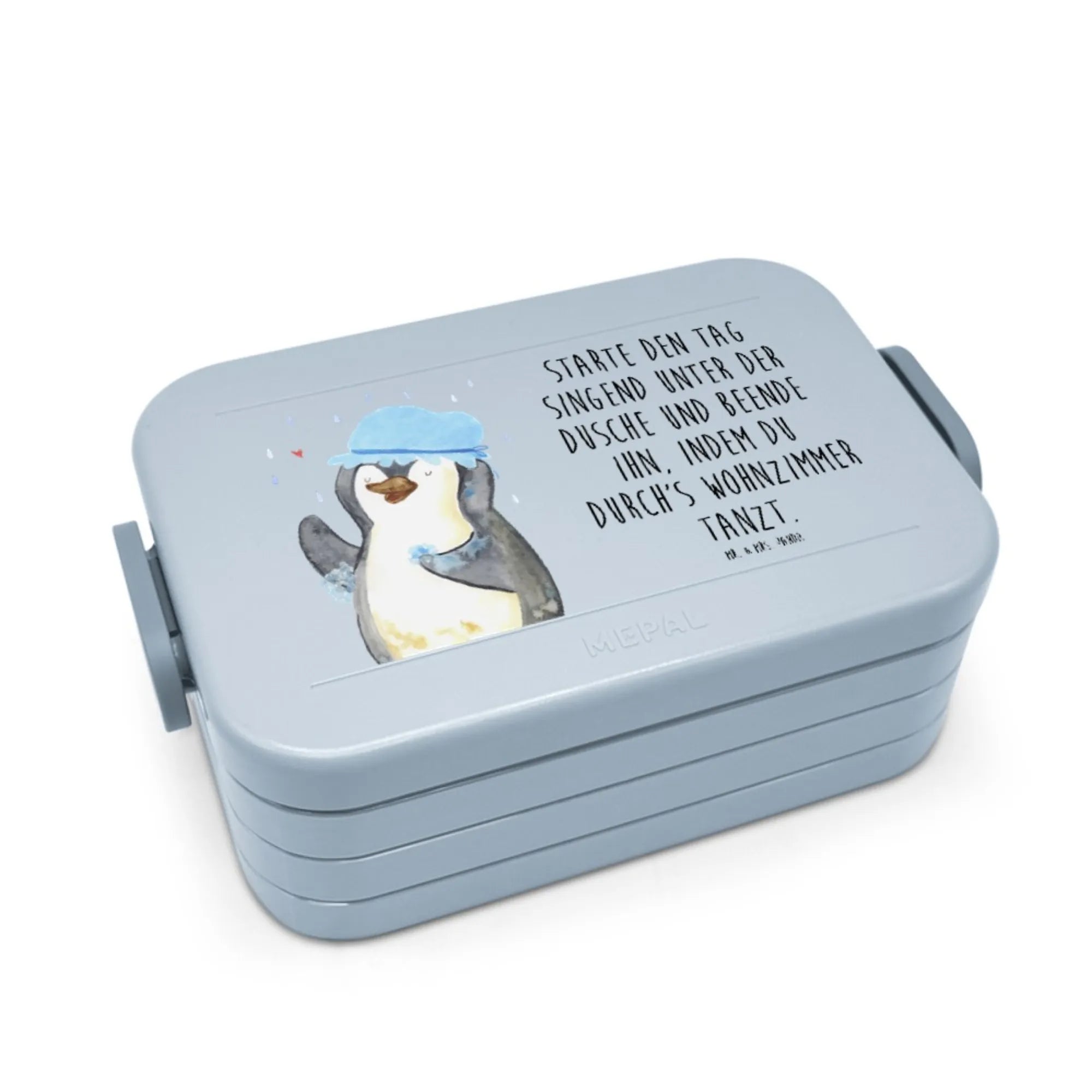 Inspirierendes Pinguin Dusche Motiv von Mr. & Mrs. Panda - Täglicher Glückbringer für dein Zuhause