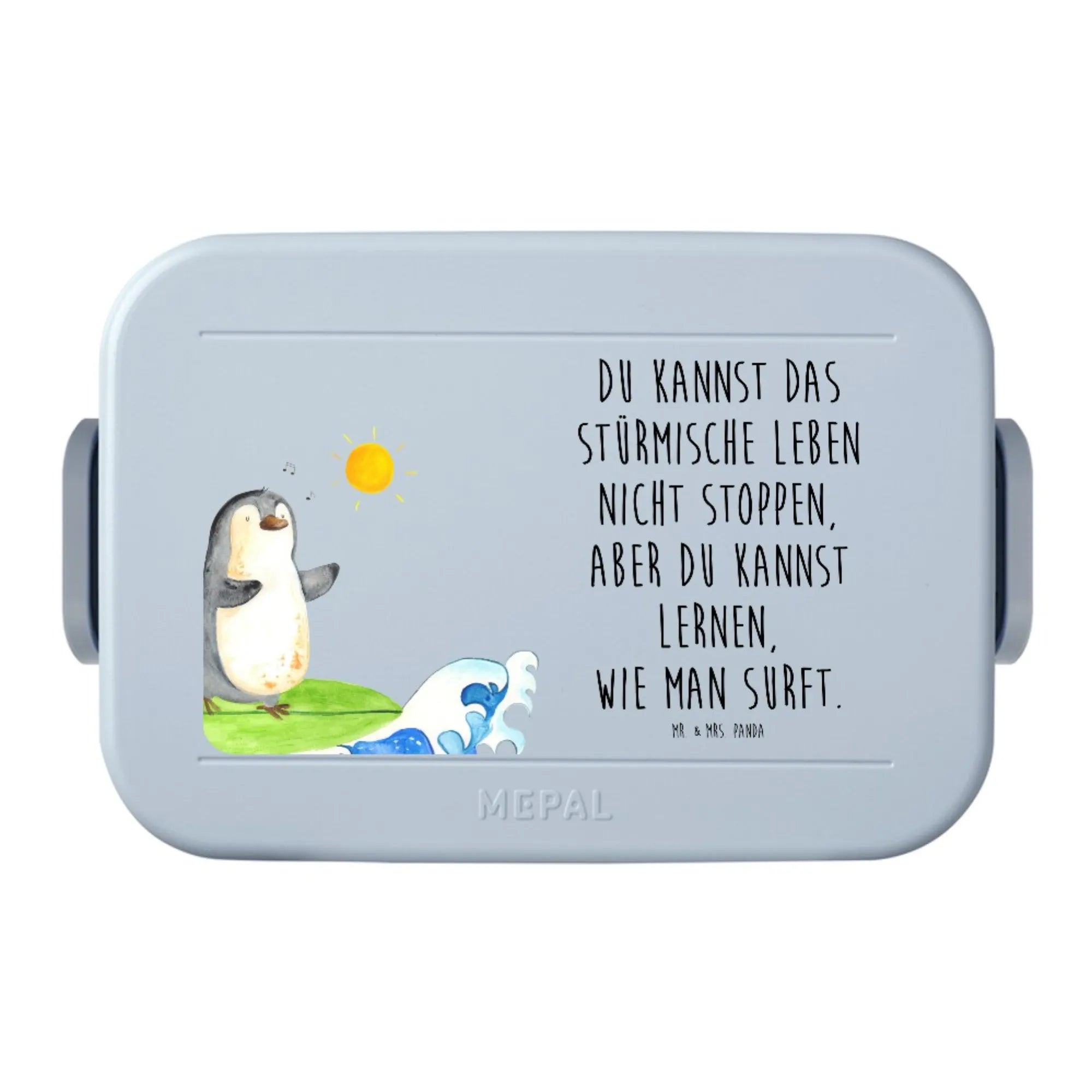 Bentobox Pinguin Surfer Motiv - Blau Pastell