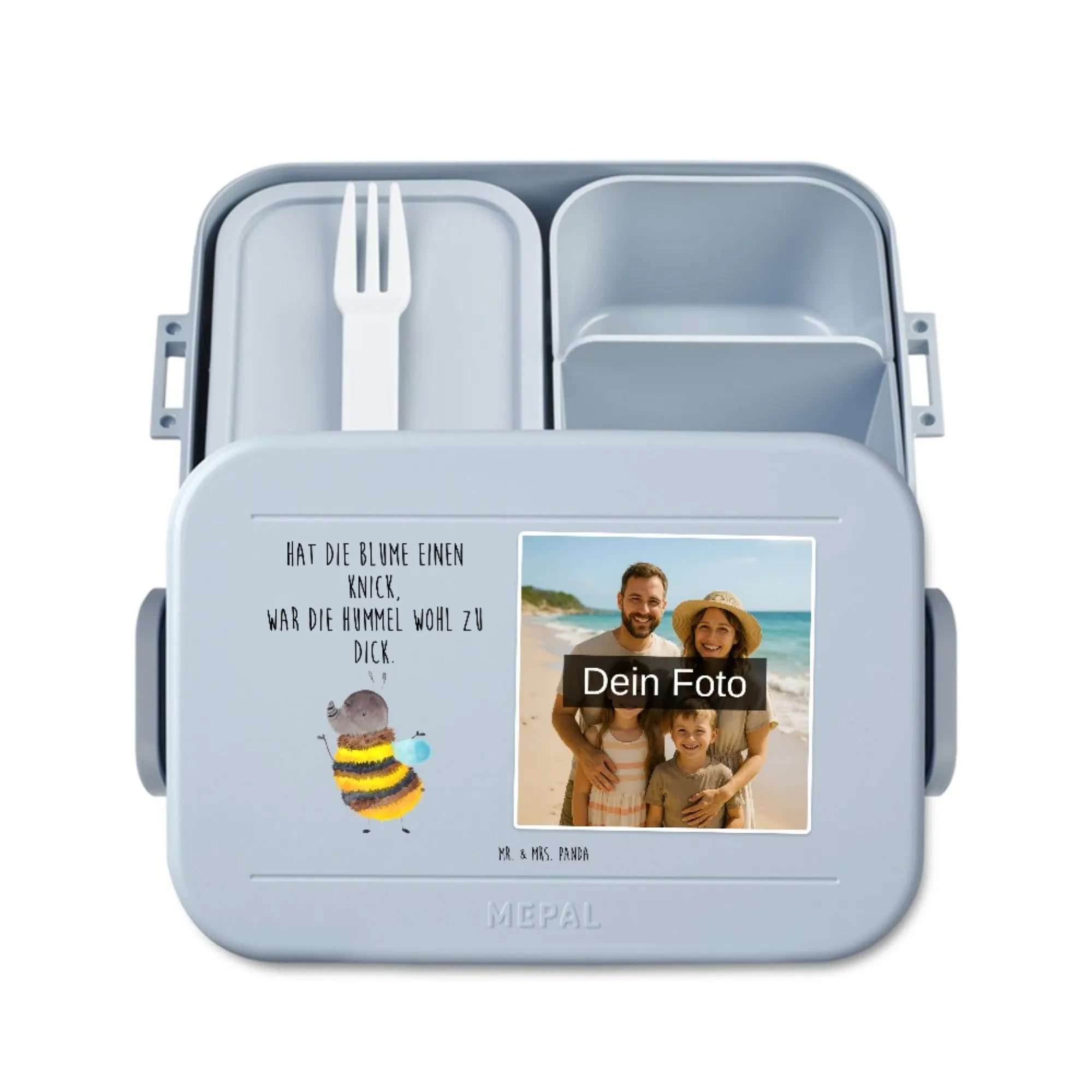 🐼 MEPAL FOTO: Personalisiere deine MEPAL Foto Bentobox mit Wunschfoto; 900 ml, herausnehmbare Einsätze, Snackgabel, liebevoll gestaltet.