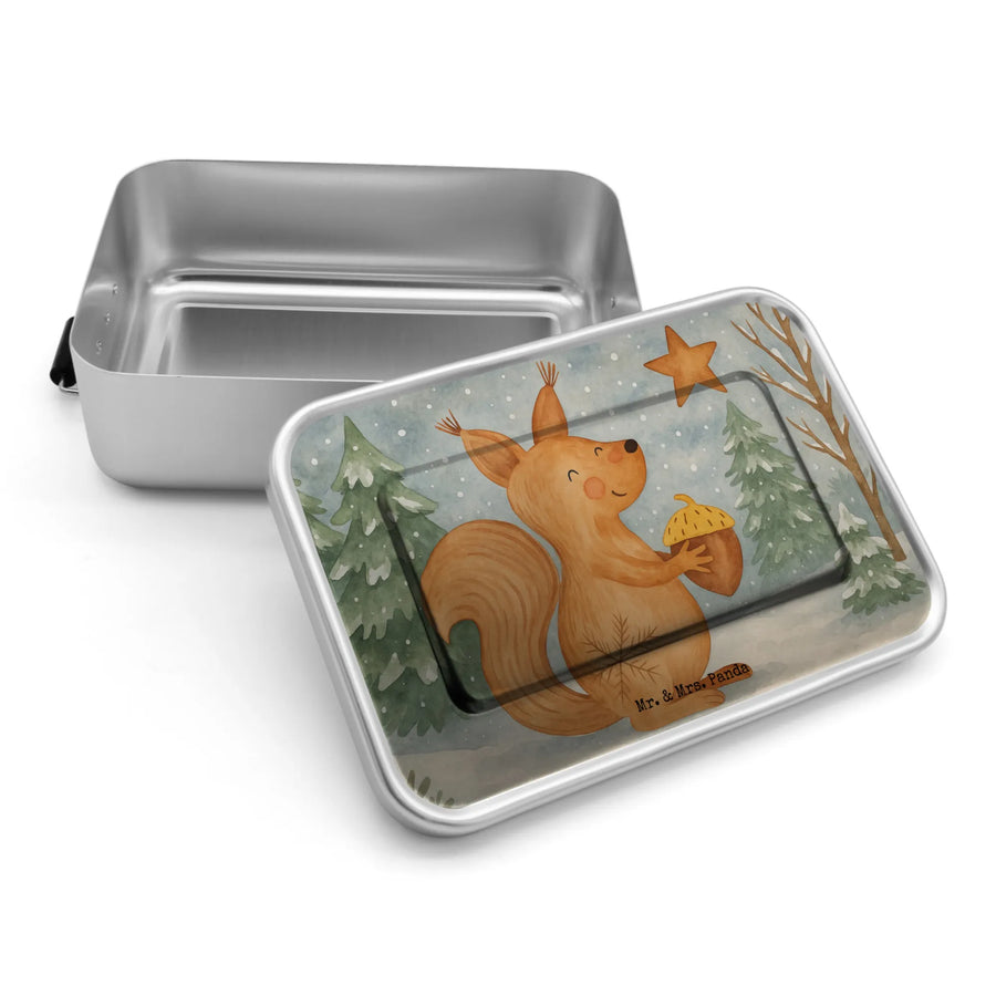 Unsere Metall Brotdose Eichhörnchen Weihnachten aus der Winter Kollektion von Mr. & Mrs. Panda bringt dir die gemütliche Stimmung der Weihnachtszeit direkt in die Brotzeitbox. Das liebevoll handgezeichnete Eichhörnchen, das eine Eichel hält und zufrieden lächelt, verströmt warmes Lichterglanz-Feeling und erinnert an Plätzchenduft, Mandarinen und behagliche Winterstunden.
