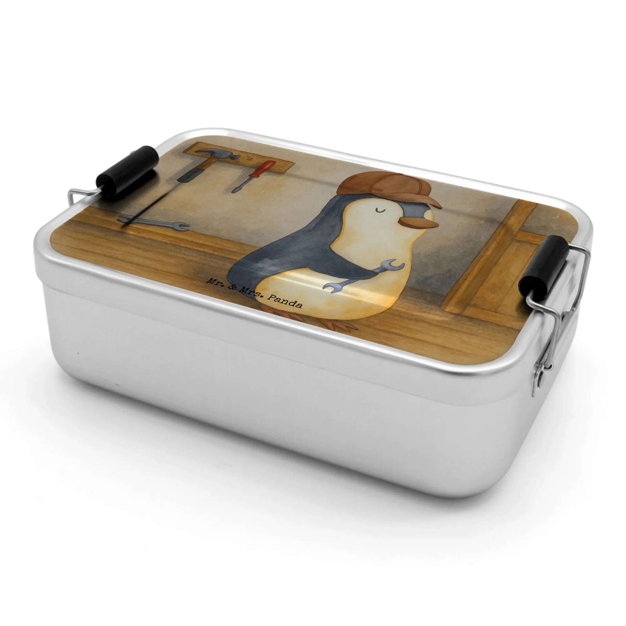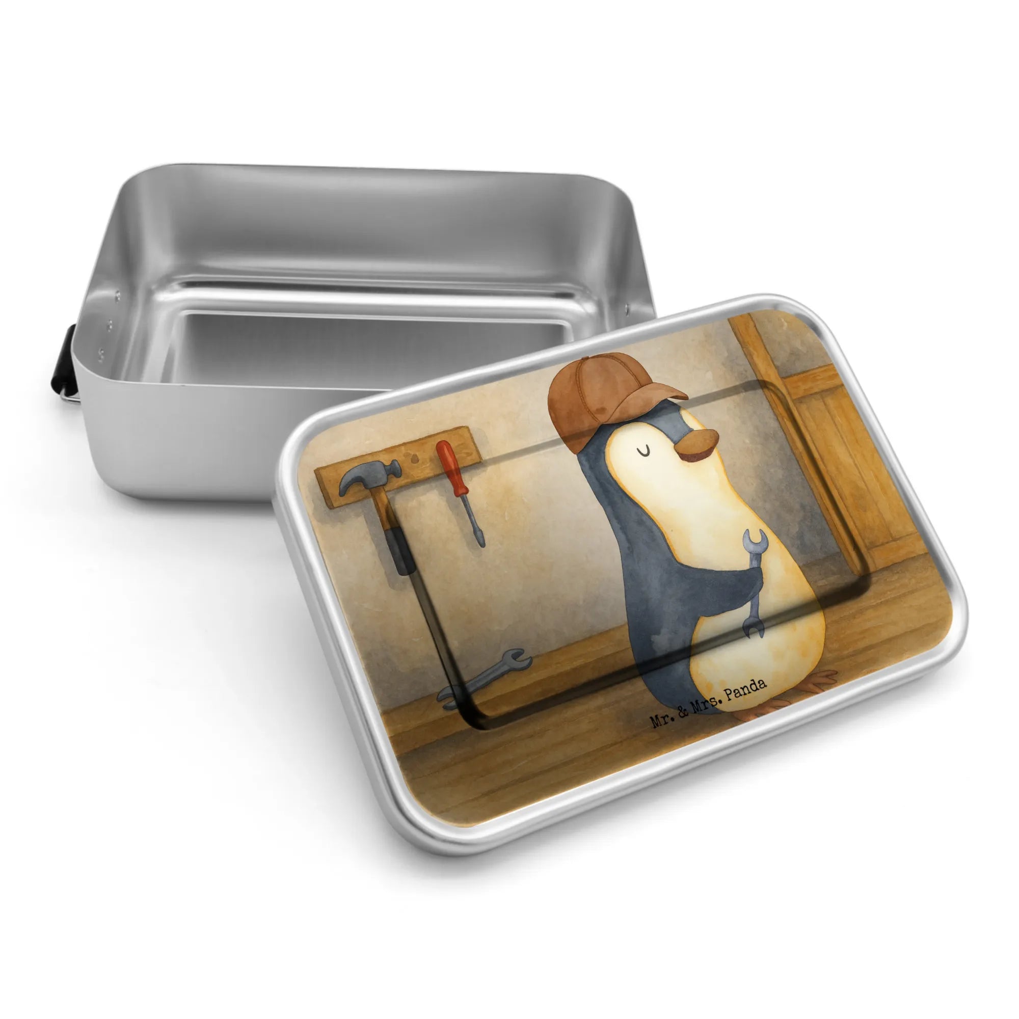 Metall Brotdose von Mr. & Mrs. Panda – die perfekte Mischung aus Funktion und Herz. Bedruckt mit dem frechen Spruch Wenn Papa es nicht reparieren kann, sind wir am Arsch. und einem charmanten Pinguin mit Schraubenschlüssel ist diese Lunchbox Metall ein echter Hingucker für Schule, Arbeit und unterwegs.