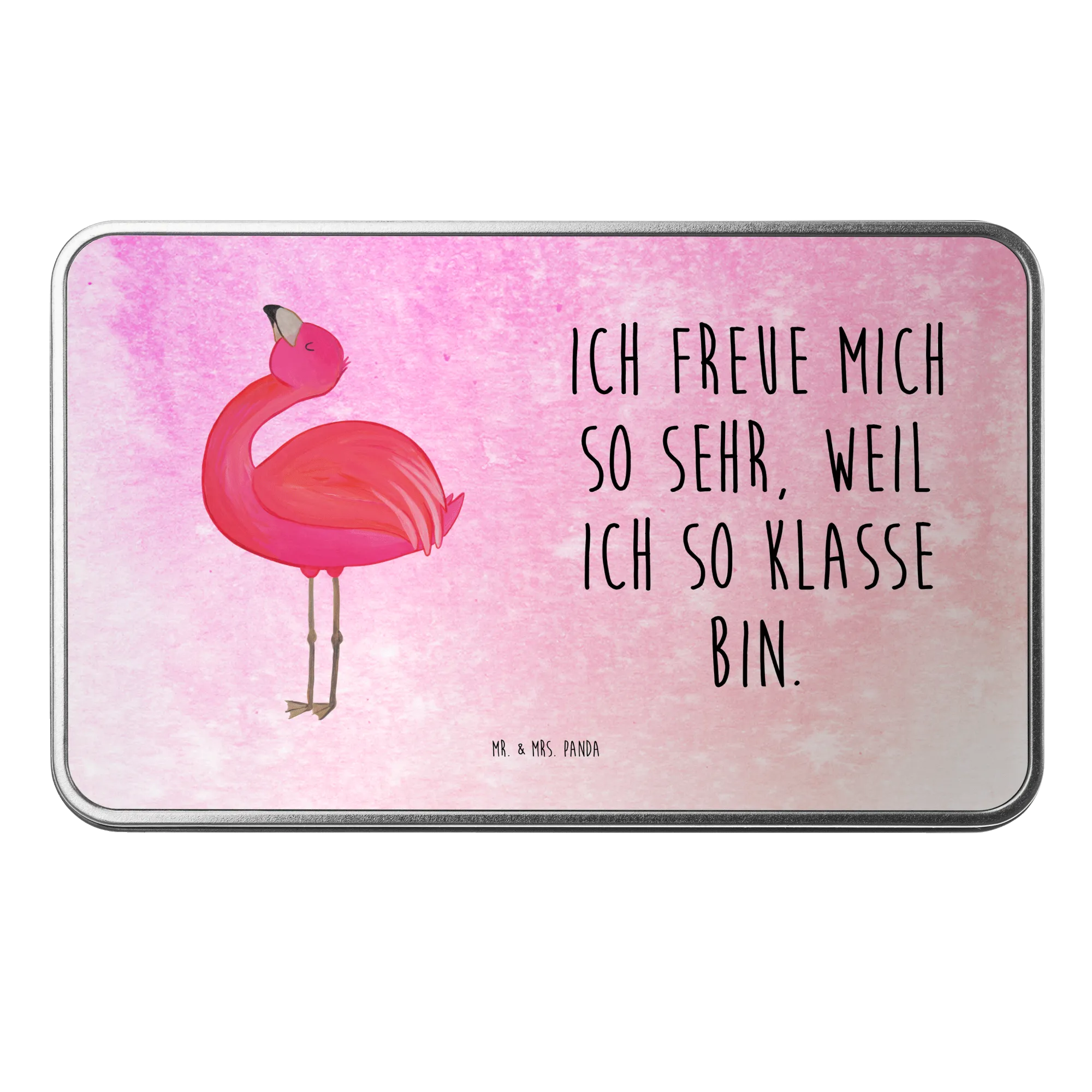 Die wunderschöne Metalldose rechteckig mit dem Motiv "Flamingo stolz" von Mr. & Mrs. Panda ist das perfekte Geschenk für all deine lieben Menschen. Ob für deine beste Freundin, Tochter, Schwester oder Mama - diese Dose zaubert jedem ein Lächeln ins Gesicht. Der Flamingo, in seiner stolzen Pose, strahlt Eleganz und Freude aus. Mit dem Spruch "Ich freue mich so sehr, weil ich so klasse bin." wird die Botschaft der Selbstliebe und Selbstakzeptanz perfekt transportiert.