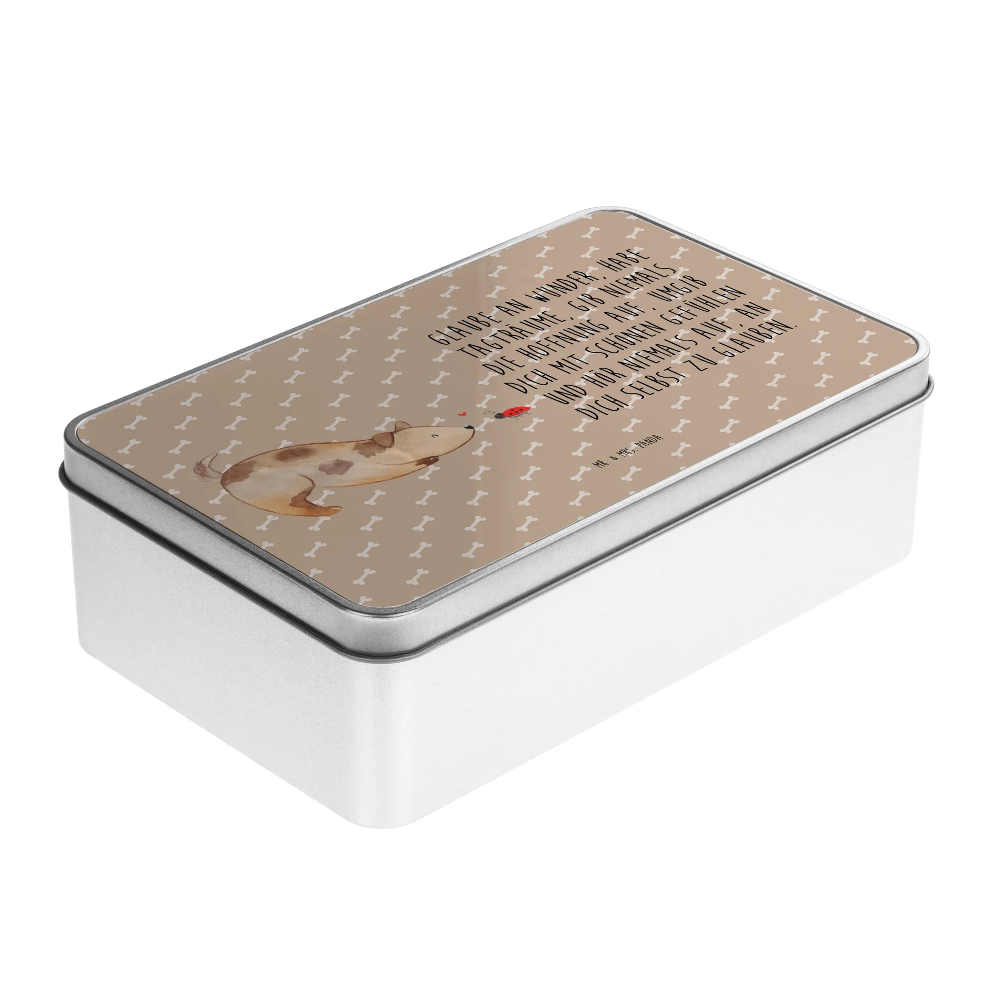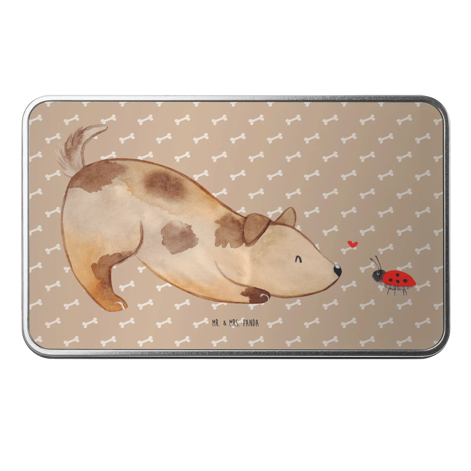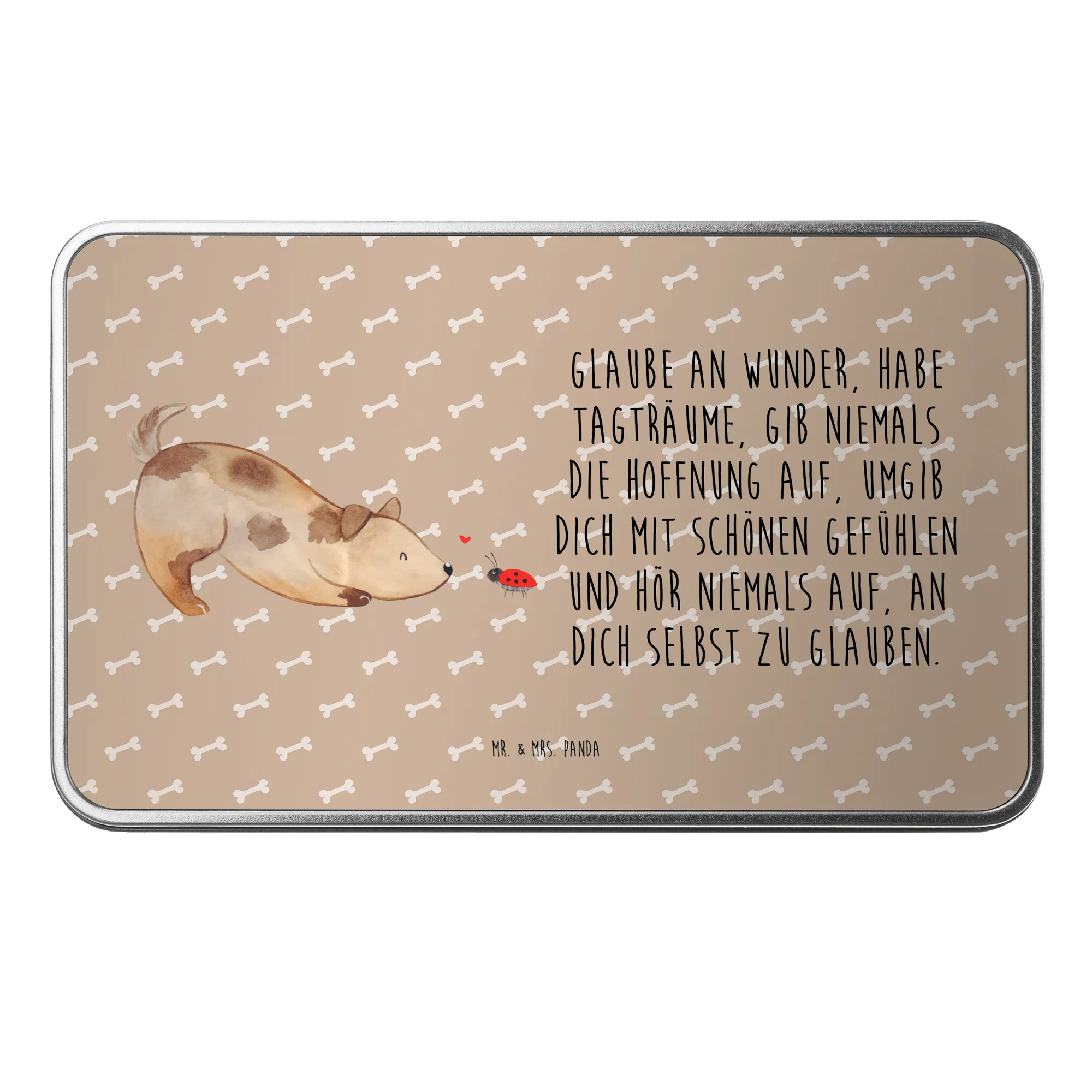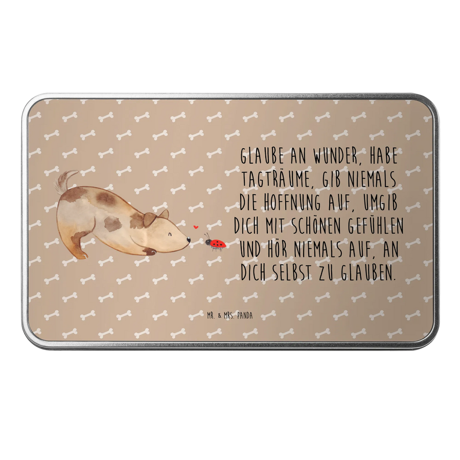 Metalldose rechteckig Hund Marienkäfer - mit Spruch