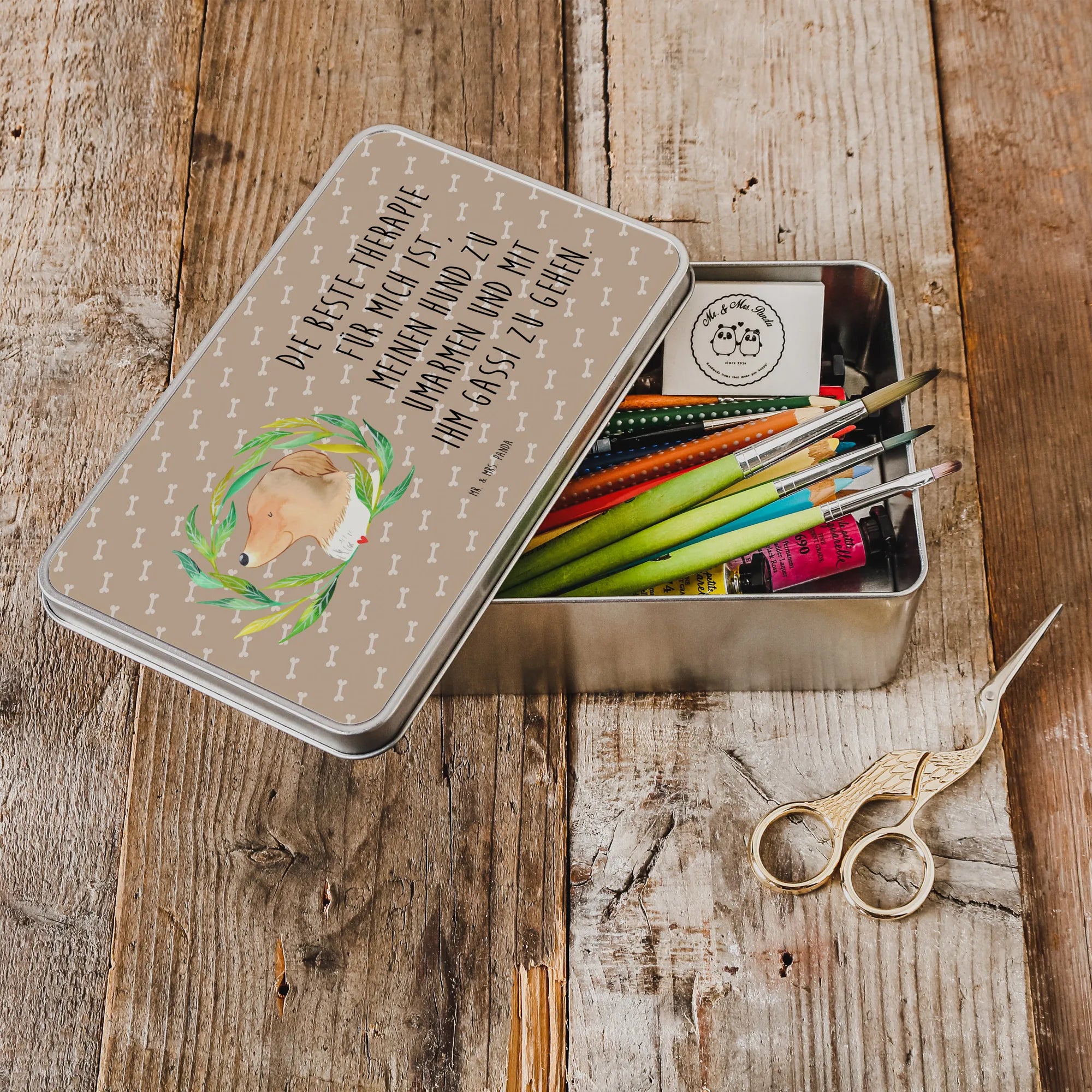 Die rechteckige Metalldose von Mr. & Mrs. Panda mit dem bezaubernden Hund Ranke Motiv ist das perfekte Geschenk für alle Hundeliebhaber und Tierfreunde. Diese wunderschöne Blechdose ist nicht nur ein stylisches Accessoire, sondern auch äußerst funktional. Mit den Maßen 187 mm x 125 mm x 36 mm bietet sie genug Platz für Kekse, Süßigkeiten oder andere kleine Schätze, die du aufbewahren möchtest. Das hochwertige Metall macht die Dose besonders stabil und langlebig. Sie glänzt nicht nur edel, sondern ist auch ein echter Hingucker in jeder Küche oder im Wohnzimmer.