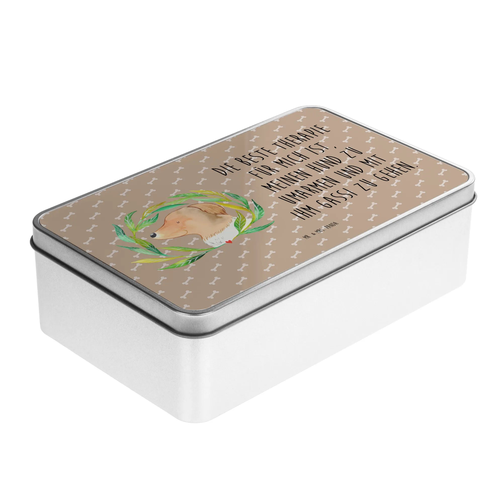 In dieser Metalldose kannst Du Kekse, Erinnerungsstücke oder sogar Futter für Deinen Vierbeiner aufbewahren. Das glänzende und hochwertige Metall sorgt dafür, dass alles frisch bleibt und gleichzeitig stilvoll präsentiert wird. Und der liebevolle Spruch „Die beste Therapie für mich ist, meinen Hund zu umarmen und mit ihm Gassi zu gehen“ bringt jeden Hundebesitzer zum Schmunzeln.