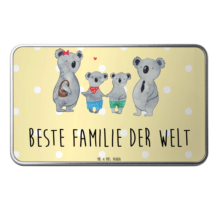 Die wunderschöne rechteckige Metalldose von Mr. & Mrs. Panda mit dem zauberhaften Motiv "Koala Familie zwei" ist das perfekte Geschenk für alle, die ihre Familie lieben. Auf der Dose siehst du eine liebevoll gestaltete Familie aus Koalabären, die zusammen Glück und Verbundenheit ausdrücken.