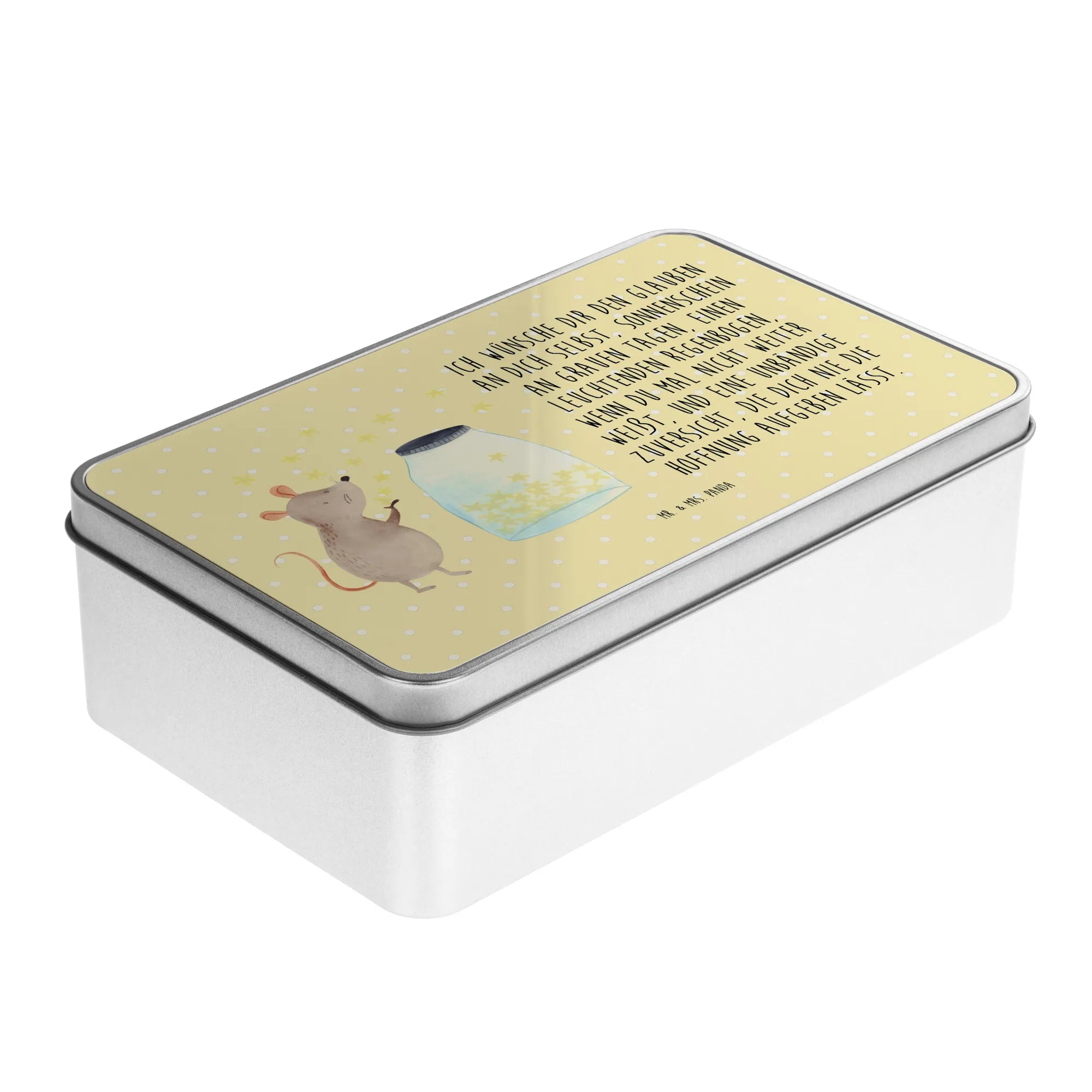 Die wunderschöne Metalldose rechteckig von Mr. & Mrs. Panda ist das perfekte Geschenk für jeden Anlass! Mit einem liebevollen Design, das eine süße Maus vor funkelnden Sternen zeigt, strahlt diese Vorratsdose nicht nur Wärme aus, sondern bietet auch Platz für all deine Erinnerungen und Leckereien.